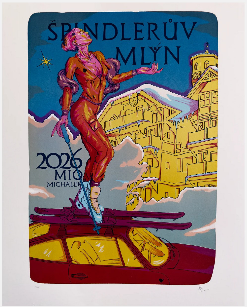 Sběratelský autorský plakát 2026, vyrobený technikou barevné litografie, číslovaný a signovaný autorem - Mio Ondrej Michalek. Vyrobeno v limitovaném počtu 111 ks.