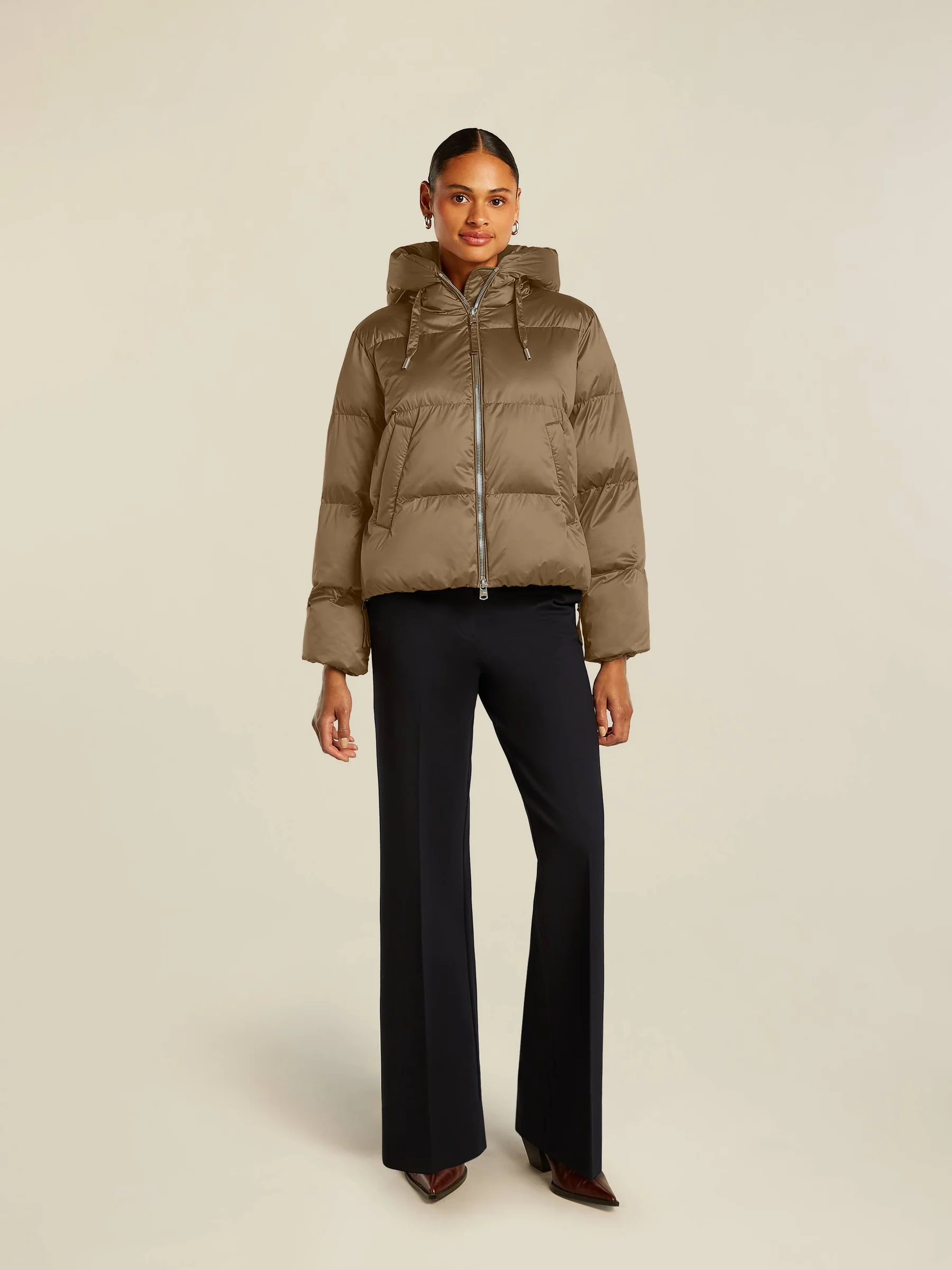 Popis:Krátká péřová bunda ze saténové tkaniny
