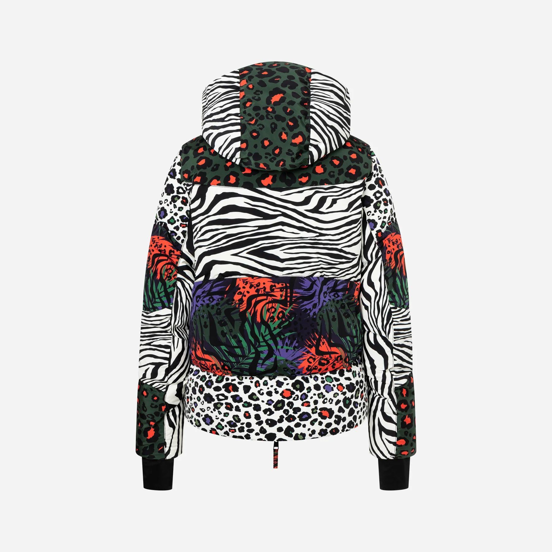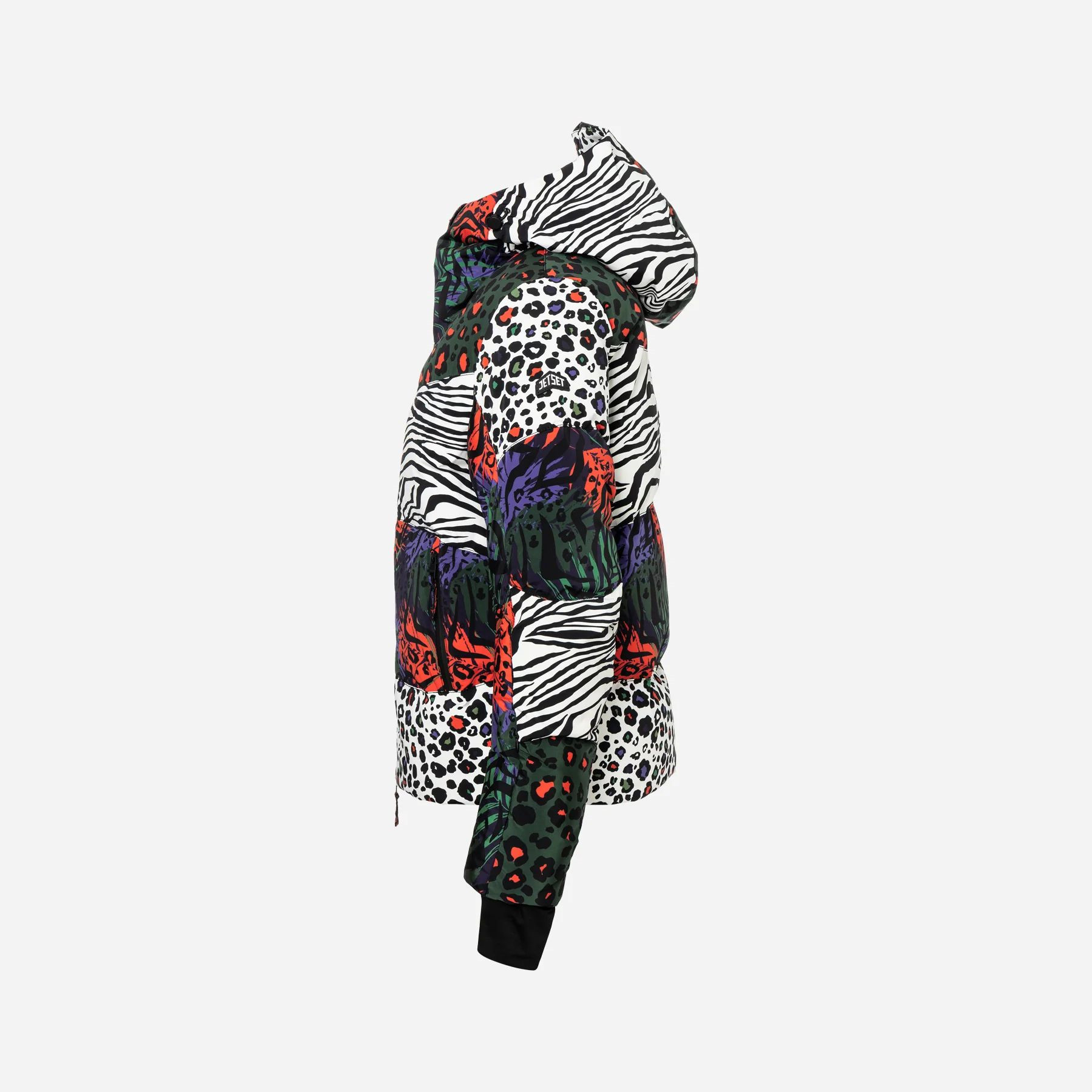 Model Rosalia přichází v elegantním střihu běžné velikosti (regular fit) s originálním printem, který okamžitě upoutá. Dvoucestný zip vpředu, zipové kapsy a prostorná kapuce doplňují podtrhují funkční prvky, zatímco kombinace sportovní estetiky s módním detailem činí z této bundy ideální volbu pro après-ski i městský zimní styl.