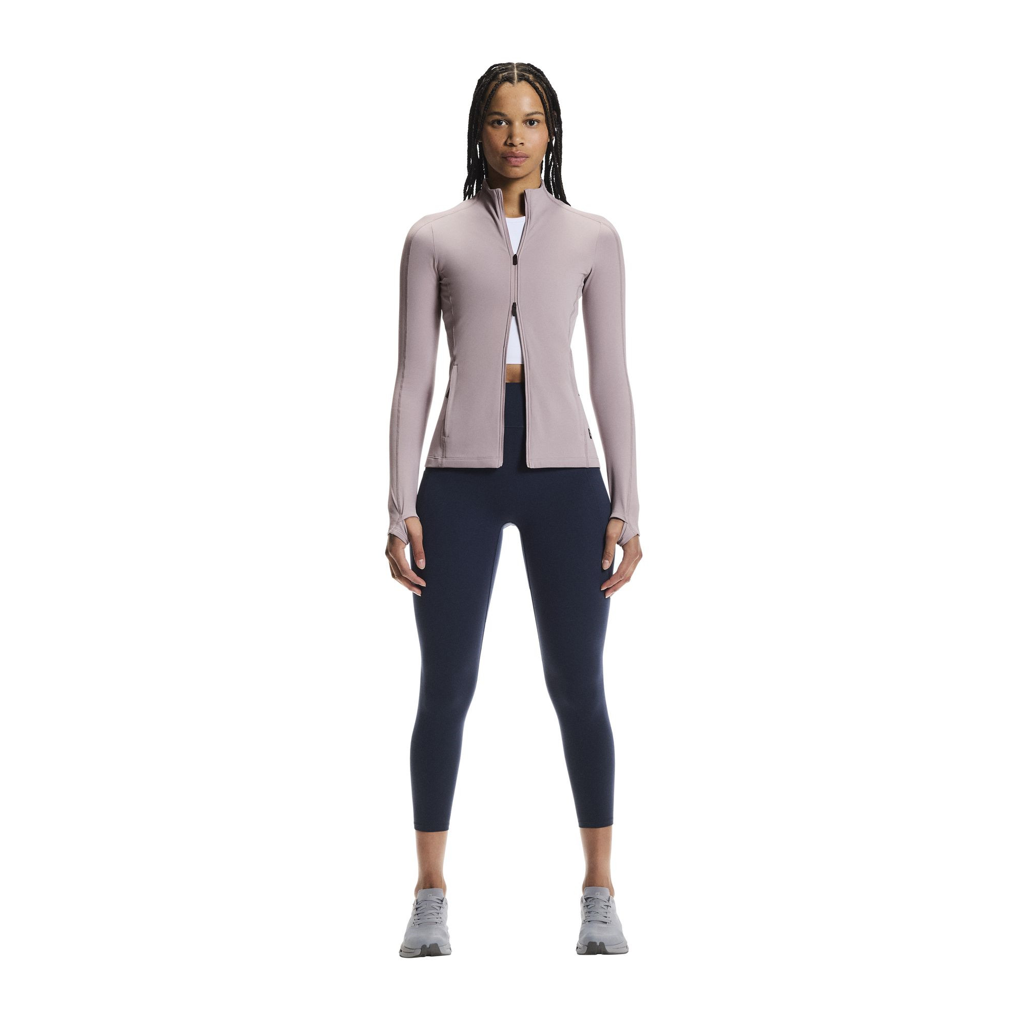 Prožijte nekompromisní pohodlí a styl s touto bundou Studio Jacket, která se pyšní přiléhavým designem, jenž se dokonale pohybuje s vaším tělem. Je vyrobena z mimořádně měkkého česaného materiálu, který poskytuje příjemný pocit na pokožce a zároveň dodává elegantní vzhled. Bunda je doplněna o stylové žebrované vsadky na rukávech, které nejenže zvýrazňují její estetiku, ale také zajišťují lepší flexibilitu. Skryté síťované panely umístěné na zádech efektivně zajišťují optimální ventilaci během cvičení s nízkou intenzitou. Tato inovativní konstrukce pomáhá udržet vás v chladu a pohodlí i při zvýšené aktivitě. Praktické boční kapsy na zip nabízejí bezpečné úložiště pro vaše cennosti, jako jsou klíče nebo karty, takže je budete mít vždy po ruce. Zapínání na přední zip usnadňuje oblékání a svlékání a umožňuje regulaci teploty podle potřeby. Bunda je ideální pro cvičení, relaxaci nebo jako stylový doplněk pro každodenní nošení, kombinující funkčnost s moderním designem. Její materiálové složení z recyklovaného polyamidu a elastanu podtrhuje udržitelnost a odolnost.
