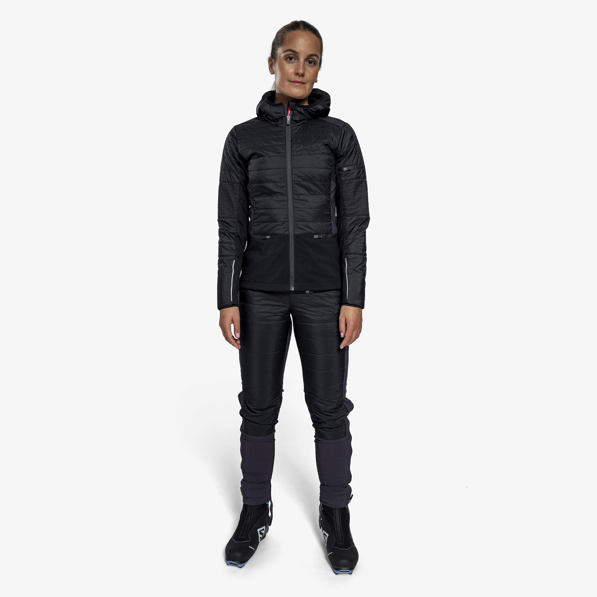 Swix Horizon je řada zimního oblečení určená výhradně pro ženskou polovinu populace, která naslouchá svým smyslům a dává přednost teplu a pohodlí během tréninku. Horizon je prodyšná hybridní bunda navržená speciálně pro ženy a určená pro trénink o vysoké intenzitě v chladných podmínkách. Přední strana a rukávy jsou prošívány materiálem PrimaLoft®, který zajišťuje odolnost proti větru a vodě a zároveň tepelnou izolaci. Zadní díl tvoří technický, větru odolný softshell s pevnou strukturou. Nejsou zde žádné membrány bránící odvodu tělesného potu. • Přední izolace PrimaLoft® Silver odolná proti větru a vodě • Dvě přední kapsy na ruce a jedna kapsa na horní části paže • Bez membrán = 360° ventilace a odolnost proti větru • Elastický "zesílený", dvojitě tkaný softshell o vysoké hustotě na zadním díle • Ergonomická kapuce • Bunda navržená speciálně pro ženy Složení materiálu: Hlavní tkanina: 100% polyamid (nylon) Zadní tkanina: 91% polyamid, 9% elastan Výplň 3: 100% polyester