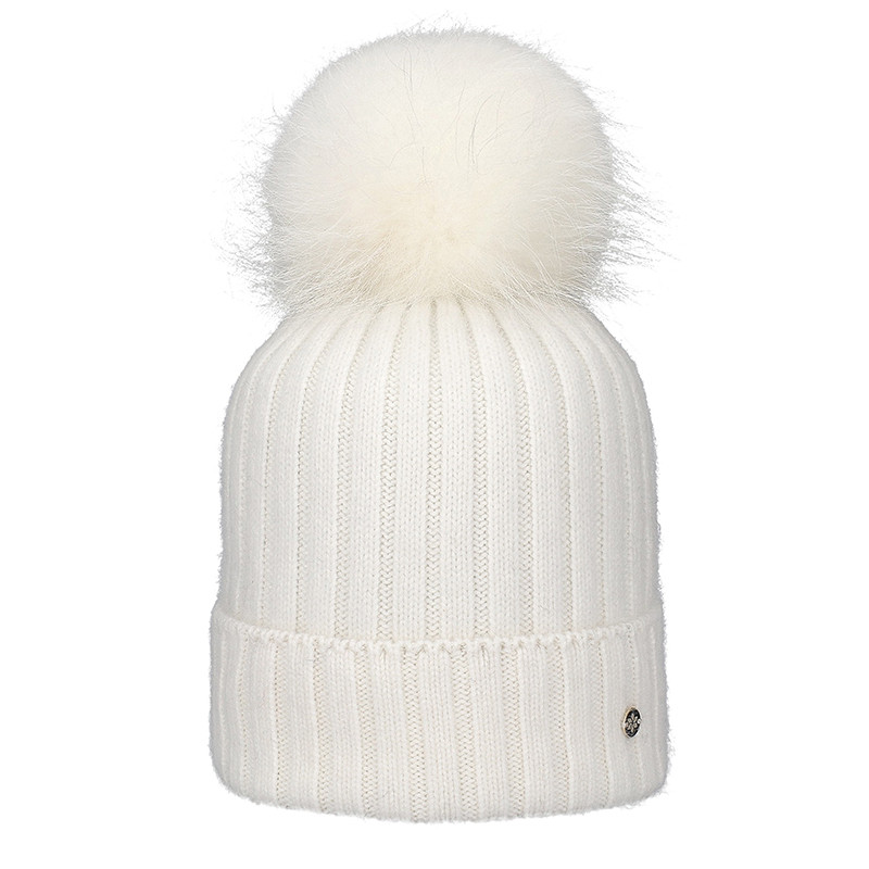 GALANTER FUR . ČEPICE S ŽEBROVANÝM LEMEM A POMPONEM Vrchní materiál: 40 % polyamid, 30 % viskóza, 20 % angora, 10 % vlna Pompon: 100 % kůže – kožešina – koňské žíně