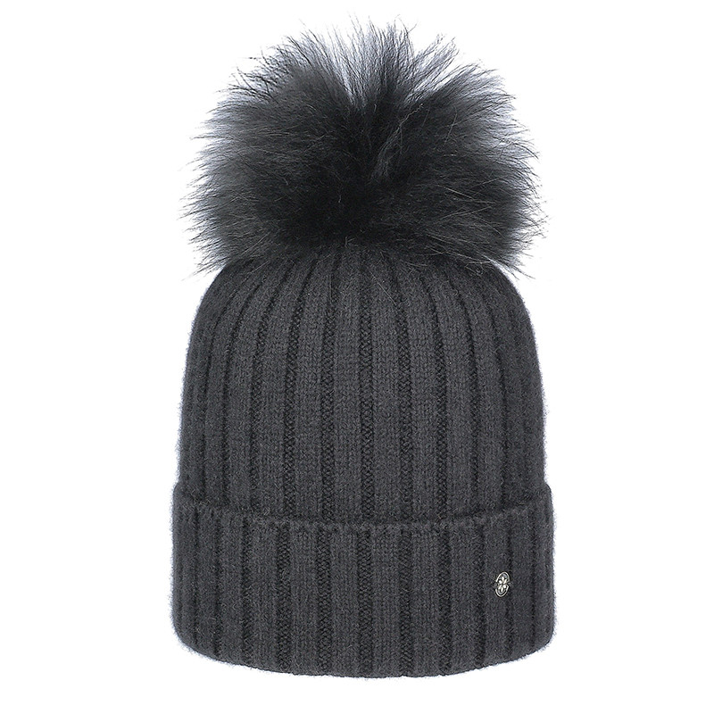 GALANTER FUR . ČEPICE S ŽEBROVANÝM LEMEM A POMPONEM Vrchní materiál: 40 % polyamid, 30 % viskóza, 20 % angora, 10 % vlna Pompon: 100 % kůže – kožešina – koňské žíně