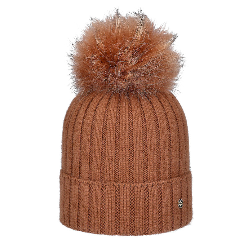 GALANTER FUR . ČEPICE S ŽEBROVANÝM LEMEM A POMPONEM Vrchní materiál: 40 % polyamid, 30 % viskóza, 20 % angora, 10 % vlna Pompon: 100 % kůže – kožešina – koňské žíně