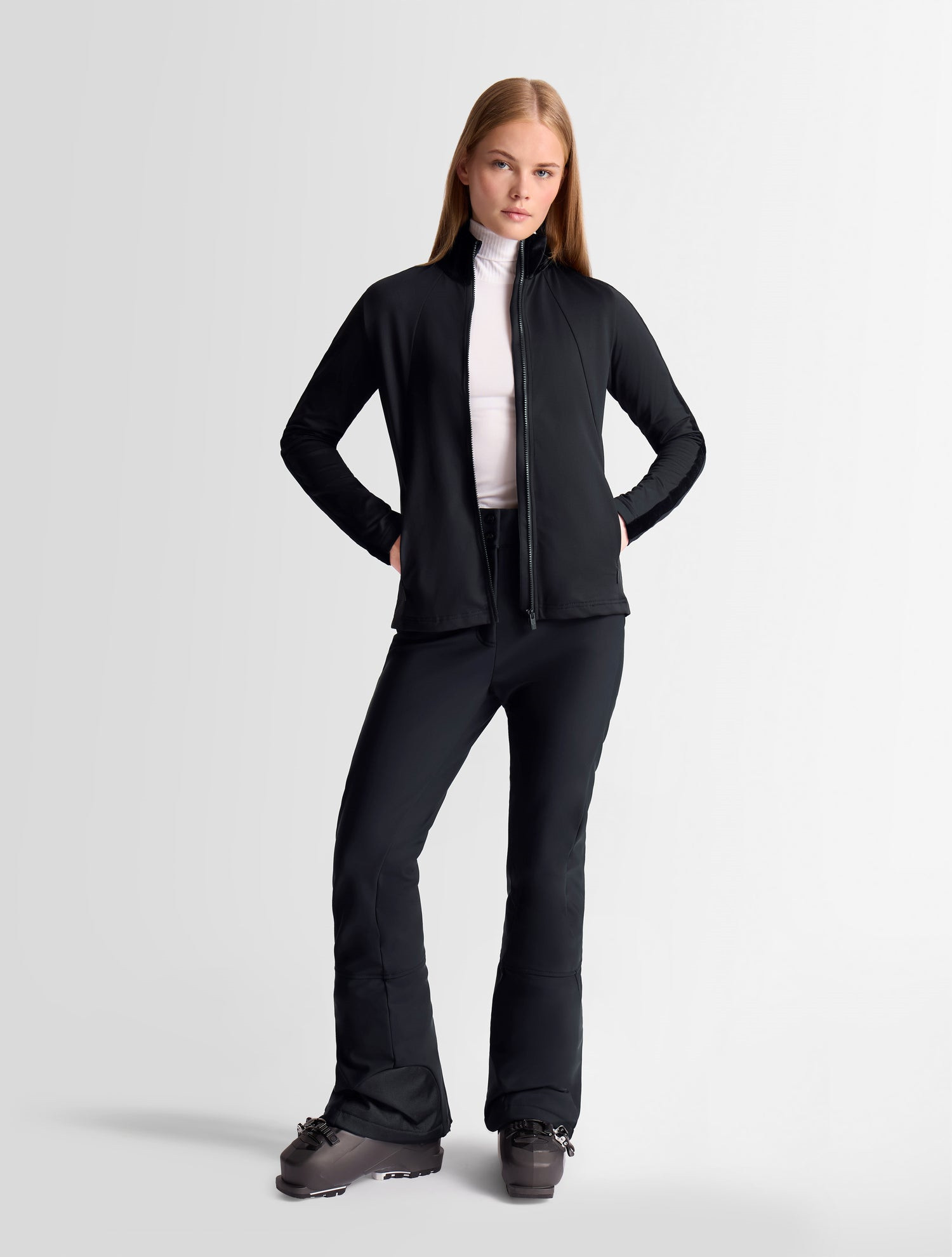 LEHKÁ BUNDA STELLARIA z černé počesané powerstrečové tkaniny Lehká bunda Stellaria je moderní a univerzální. Je vyrobena z kartáčované lehké tkaniny Powerstretch, která se přizpůsobí každému pohybu. Její vzhled podtrhují pruhy na rukávech. Tuto bundu lze nosit samostatně v mezisezóně nebo vrstveně pod kabátem v zimě a bude se skvěle hodit jak do města, tak na hory.;[MATERIÁL: 90% POLYESTER 10% ELASTAN [MATERIÁLY: 84% POLYESTER 9% ELASTAN 7% POLYURETHAN [PODŠÍVKA : 100% POLYAMID; Prát odděleně Před praním v pračce zapněte všechny zipy a suché zipy Otřete hadříkem proti rozlití Nepoužívejte optické zjasňovače Nepoužívejte aviváž Nenechávejte oděv mokrý ani složený.