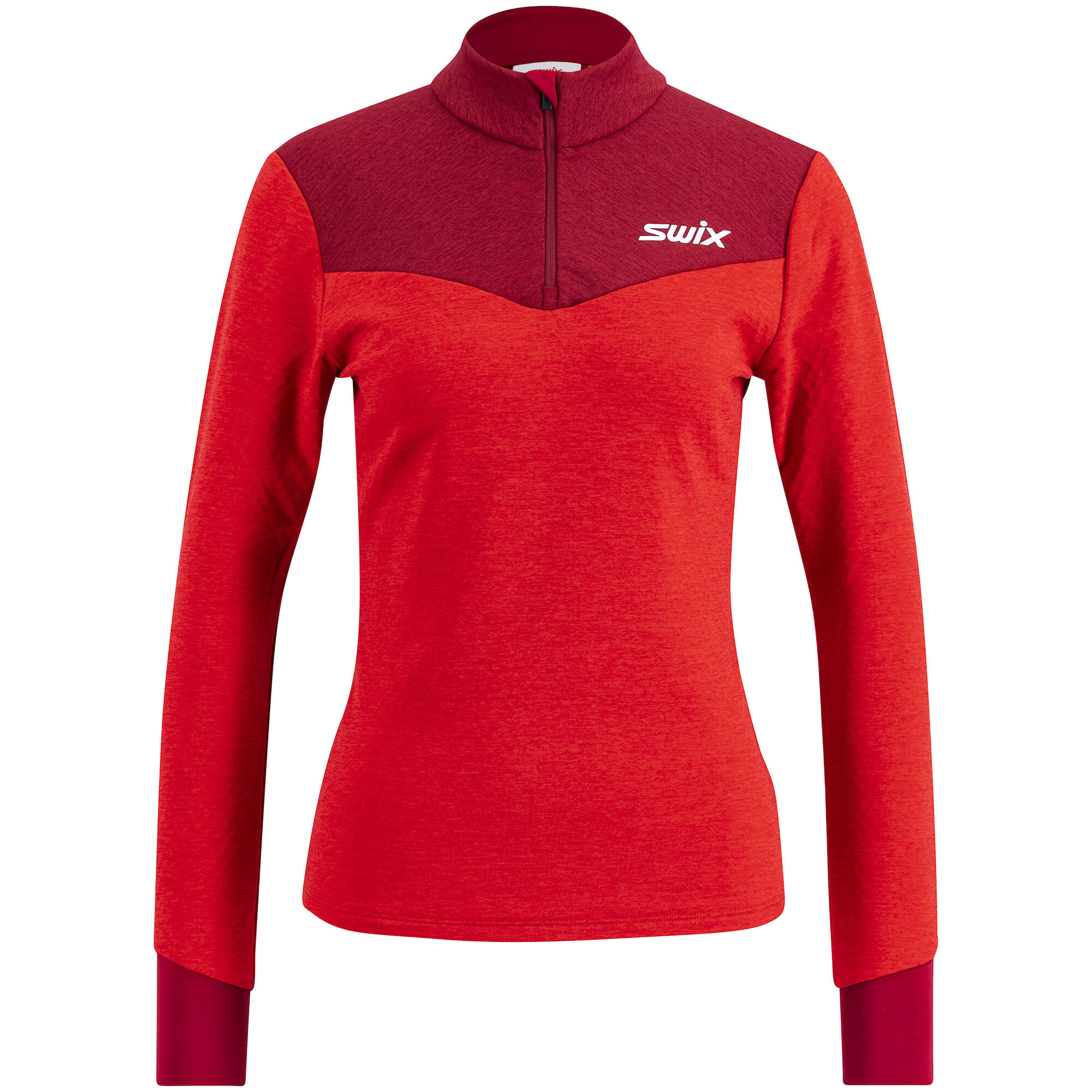 Zateplovací funkční vrstva se stojáčkem a polovičním zipem, navržena pro použití při běhu na lyžích ve vysoké intenzitě v chladnějších dnech. Mikinu lze použít na první vrstvy nebo přímo na kůži. Hlavní materiál má dobrou úroveň pružnosti, rychle schne a má počesanou rubovou stranu. Je konstruován se zipem u krku pro snadné odvětrání, pokud potřebujete uvolnit teplo během aktivity. Elastické manžety na spodním lemu.