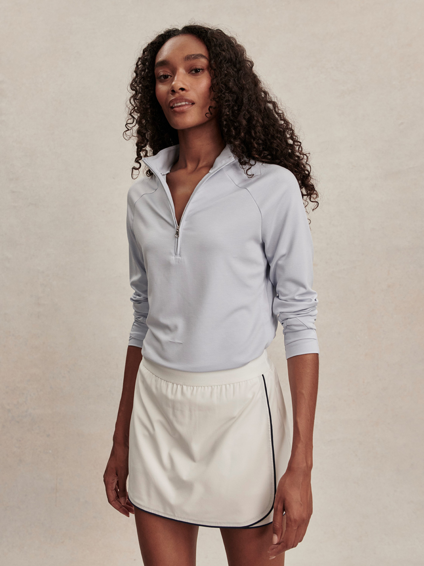 Tato mikina s dlouhým rukávem a polovičním zipem je navržena tak, aby se přizpůsobila vašim pohybům. Je vyrobena z lehkého, mimořádně měkkého modálního úpletu a má stojáček, otvory na palce, prodloužený zadní lem a boční rozparky – je ideální pro volný čas i aktivní dny.