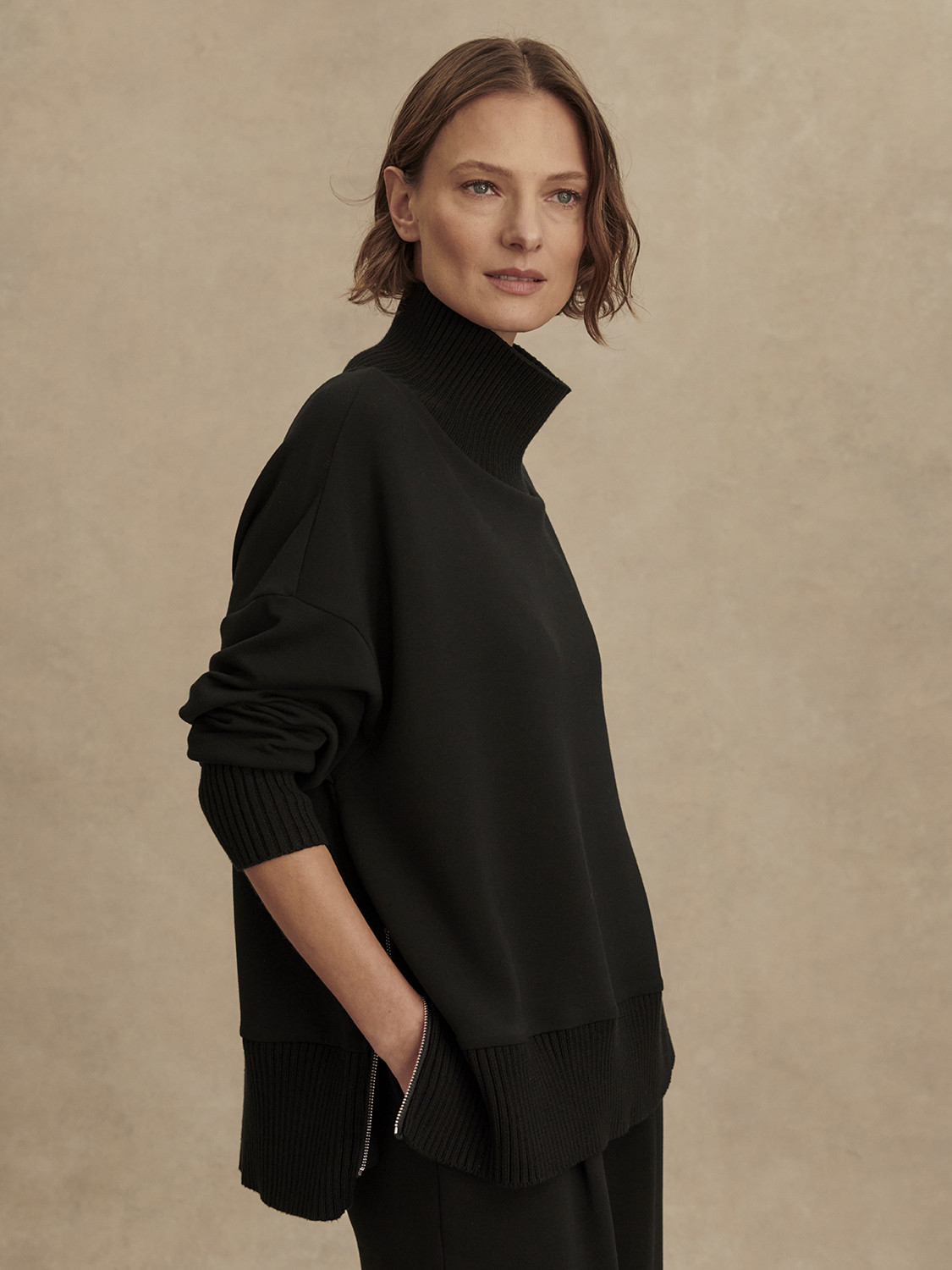 Vysoký límec s polozipem pro variabilní styling