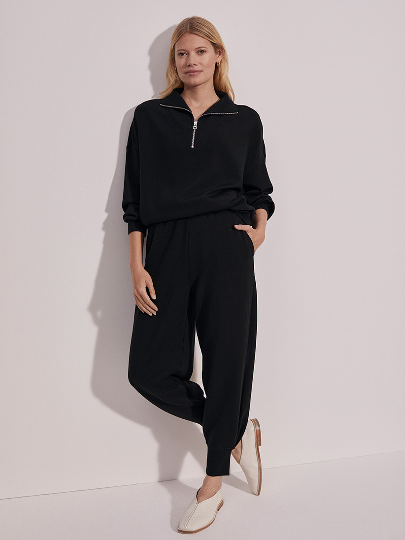 Tato všestranná mikina je střižena do oversized střihu, má panelový výstřih s polovičním zipem a hluboké manžety s lemem. Je vyrobena z patentované tkaniny DoubleSoft® a je určena k nošení na cestách.
