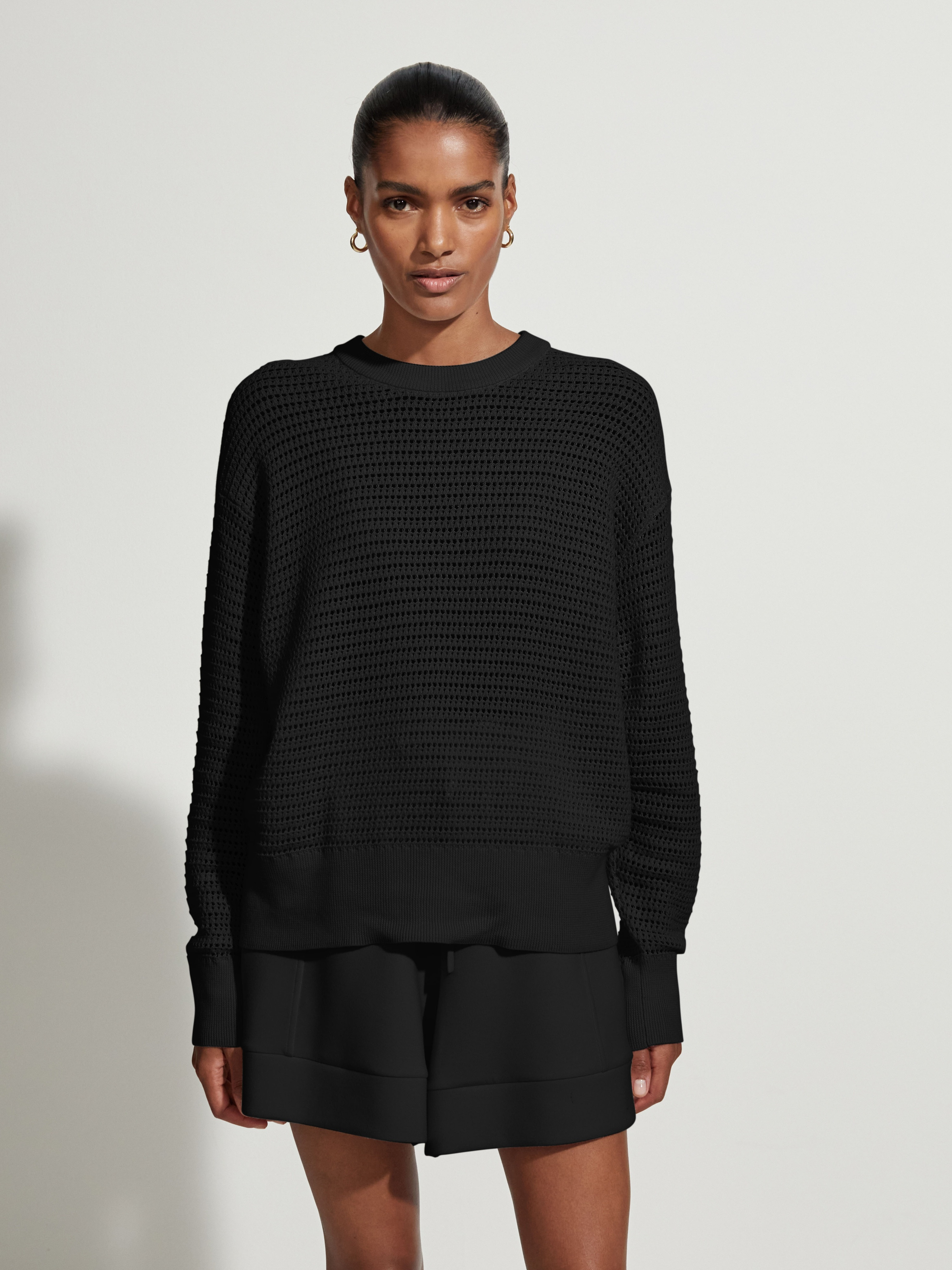 Tento moderní střih s výstřihem je vyroben z texturovaného otevřeného úpletu volné siluety a je krásně lehký a prodyšný. Je doplněn žebrovaným lemem a manžetami a lze jej vrstvit na životní styl nebo tenisový vzhled, čímž získáte přechodový vzhled bez námahy.