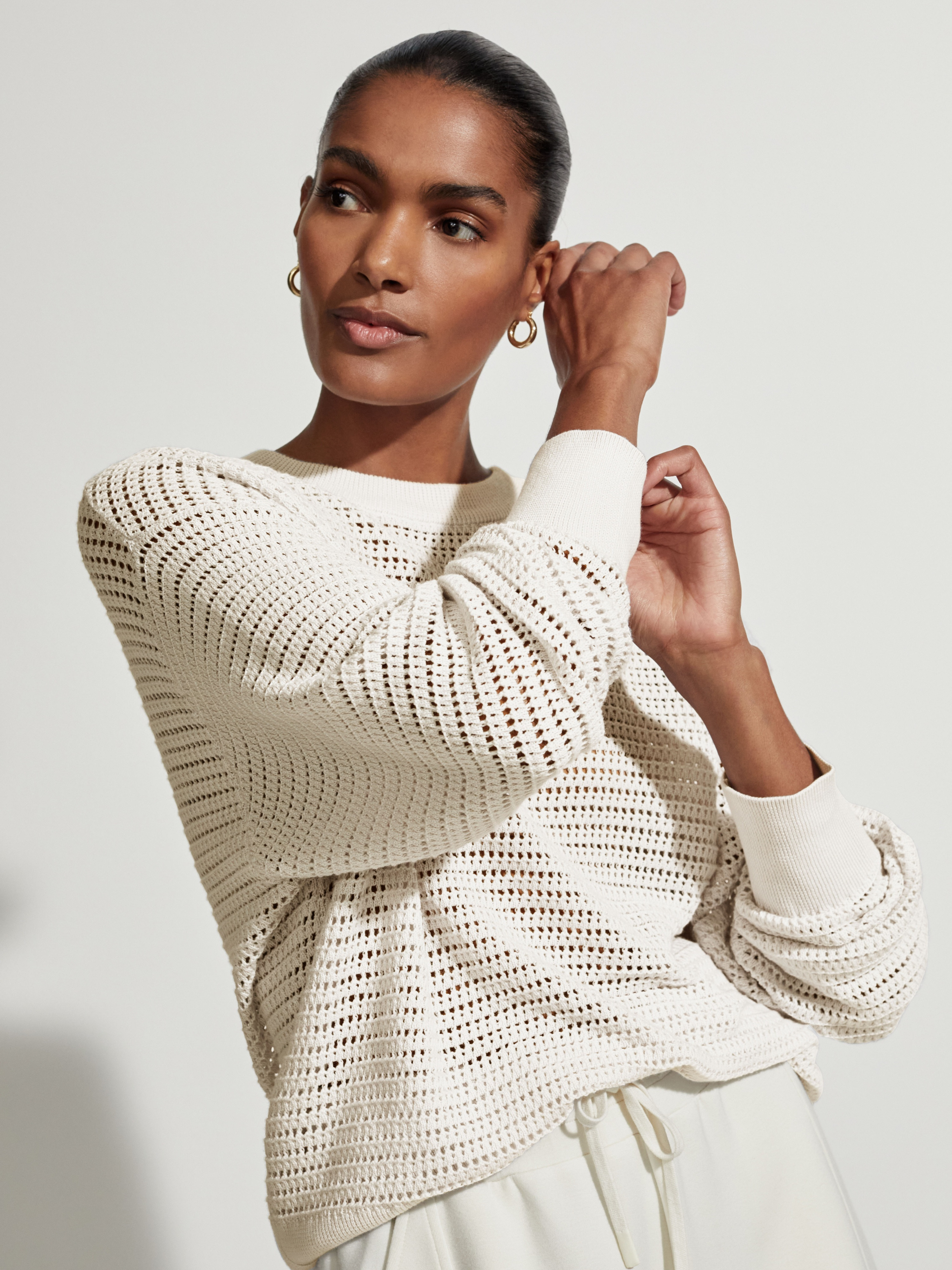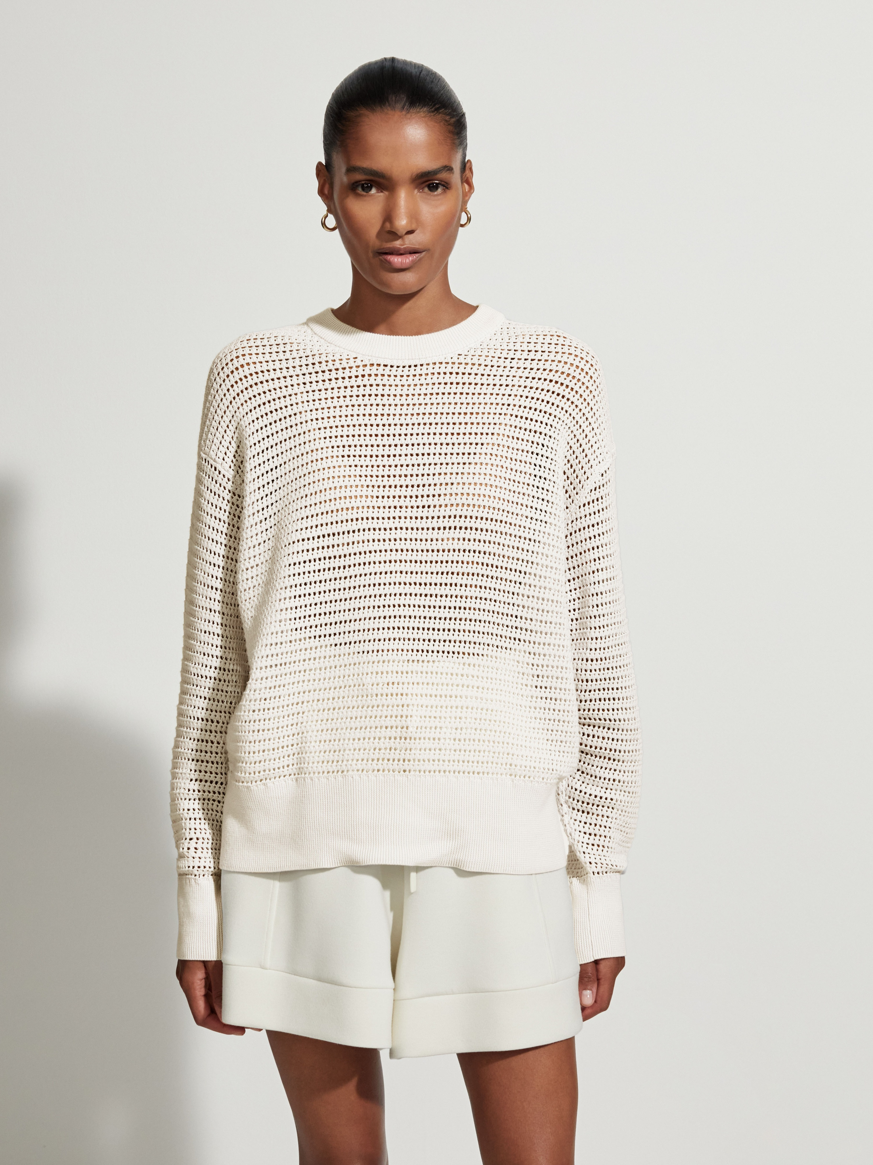 Tento moderní střih s výstřihem je vyroben z texturovaného otevřeného úpletu volné siluety a je krásně lehký a prodyšný. Je doplněn žebrovaným lemem a manžetami a lze jej vrstvit na životní styl nebo tenisový vzhled, čímž získáte přechodový vzhled bez námahy.