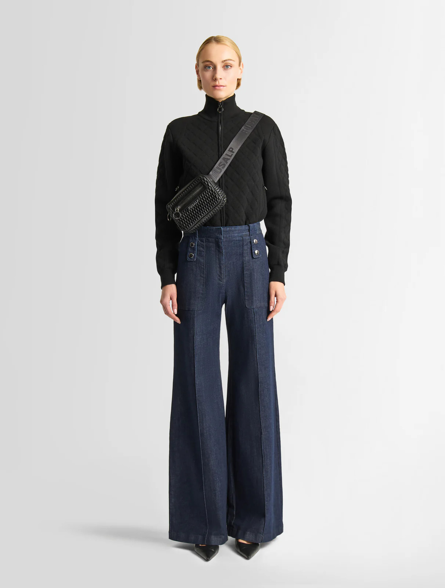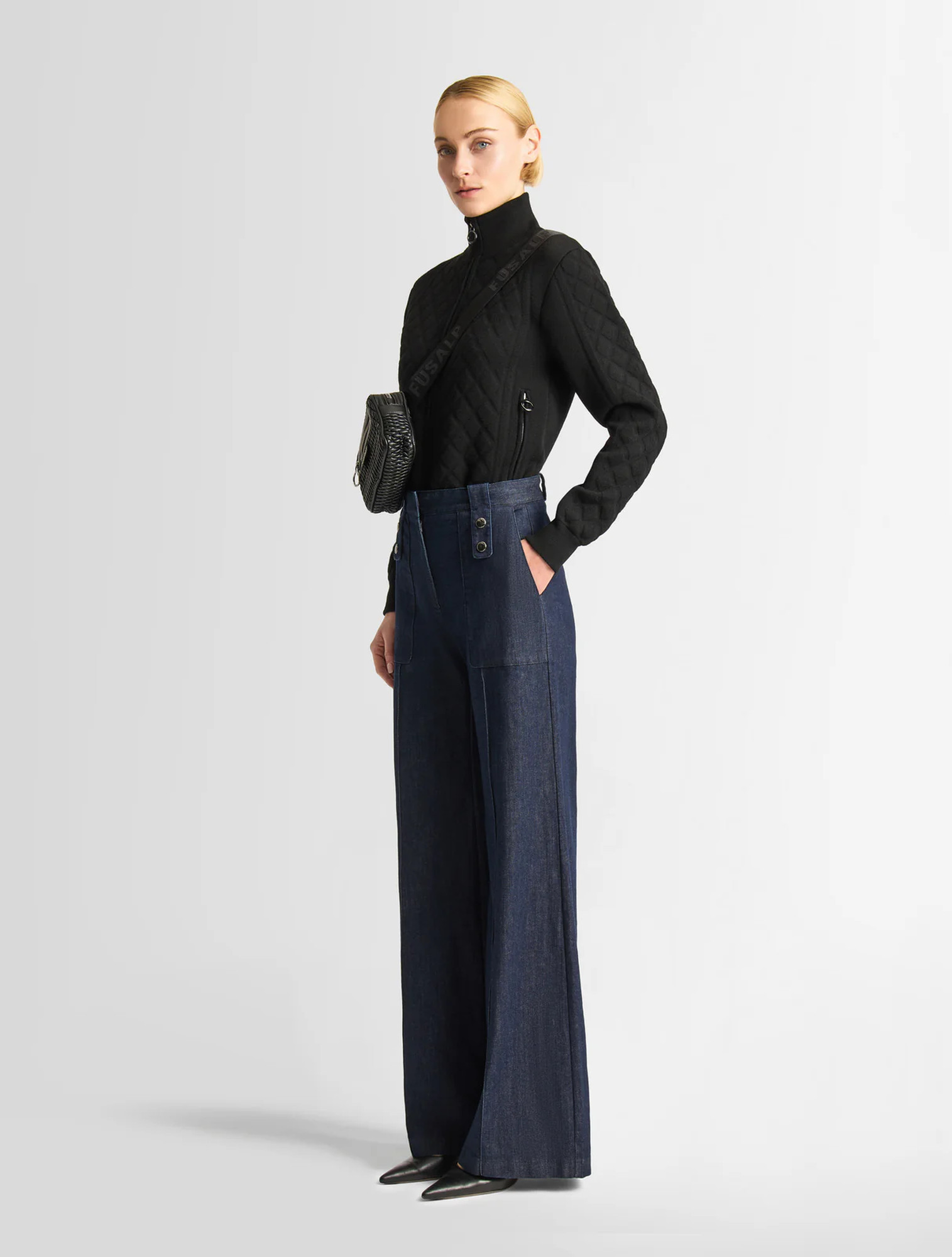 Kalhoty Noela Denim oslní svým moderním a grafickým vzhledem. Jsou inspirovány módou 70. let, zvýrazňují je rozšířené nohavice a vysoký pas. Pohodlné a stále tak ženské, tyto ikonické kalhoty jsou zakončeny našitými kapsami na přední straně a charakteristickými dělícími švy Fusalp podél nohavic.