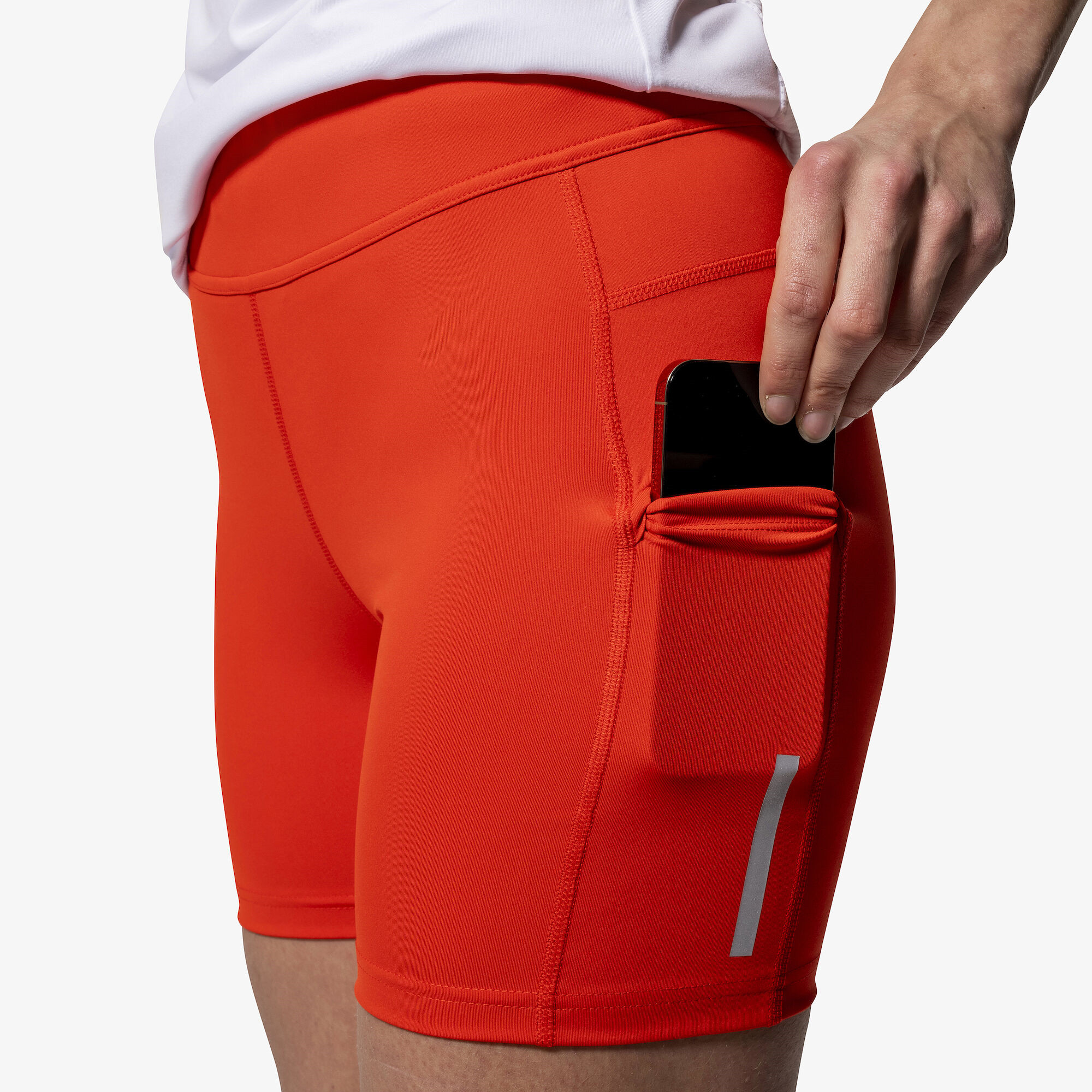 Krátké dámské běžecké elasťáky z kvalitního čtyřsměrně strečového materiálu. Přiléhavý střih, aby kalhoty perfektně padly i při nejintenzivnějším tréninku v běhu či na kolečkových lyžích. Tyto dámské šortky mají široký lem v pase doplněný o stahovací šňůrku pro lepší regulaci a vzadu pod pasem je malá kapsička na klíče. Kraťasy mají reflexní prvky pro dobrou viditelnost a bezpečí. Materiál: 82% polyester / 18% spandex