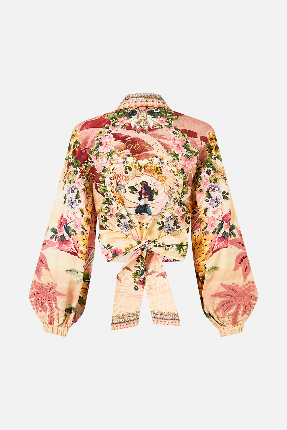 V Austrálii navržená košilka Welcome To The White Lotus Cropped Wrap Shirt vás zve do spolupráce CAMILLA x White Lotus, kde se v dekadentní říši tajemství a cestování střetávají svůdné sny o západu slunce a vzácná tajemství. Tato elegantní košile CAMILLA, s láskou ručně vyrobená, se pyšní elegantní zkrácenou délkou s univerzálními vázačkami. Můžete je nosit zavinuté přes tělo, uvázané vpředu nebo stočené a zapnuté vzadu pro sofistikovanou ultrakrátkou siluetu. - Blousonové rukávy po celé délce s elastickými manžetami - Zkrácená délka - Zavazování vepředu na několik způsobů - Stojanový límec - Křišťálové zdobení - Neprůsvitná