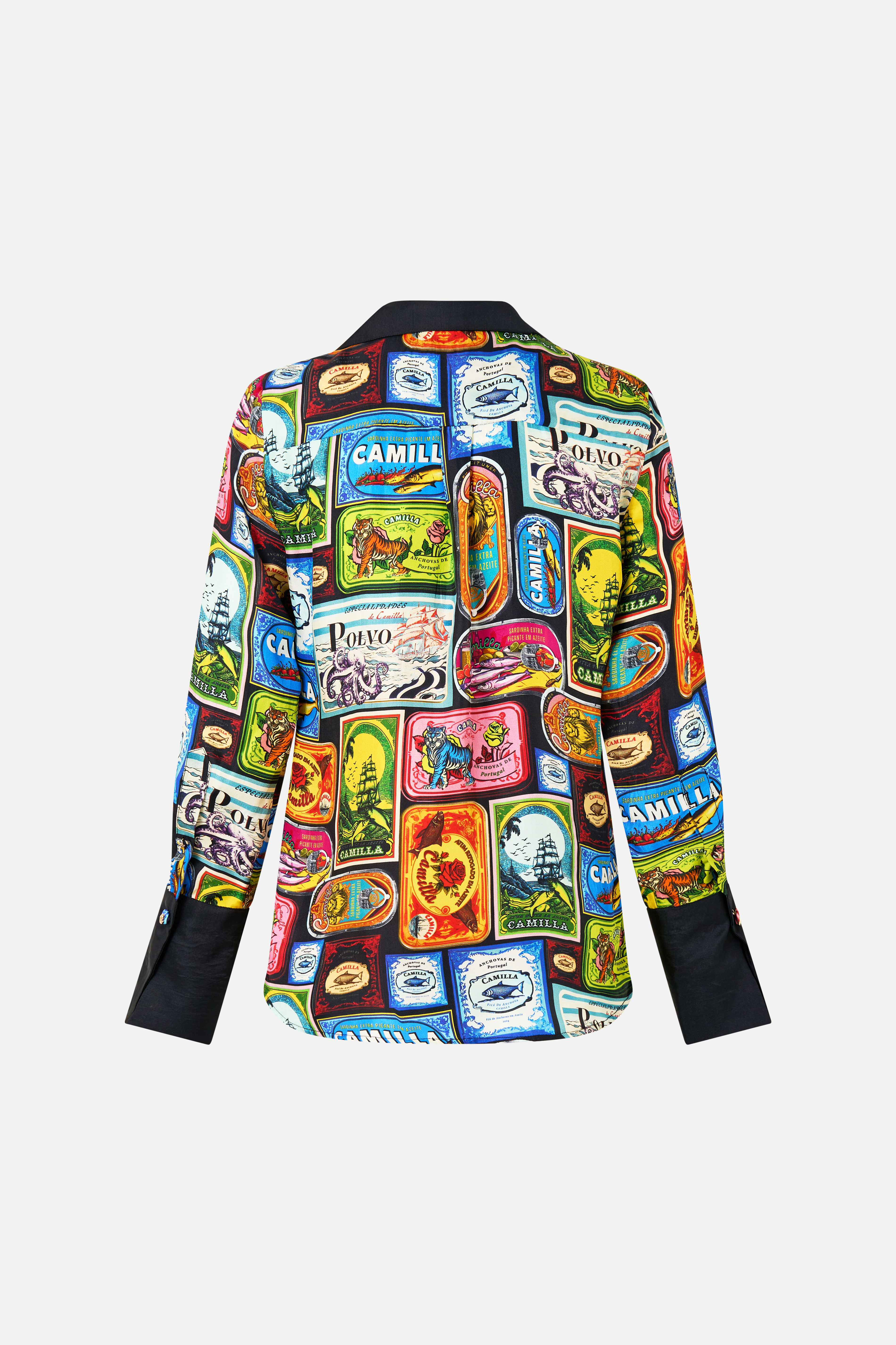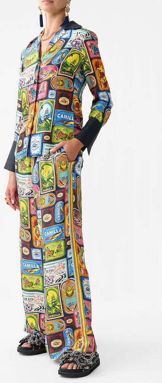 Pyžamové tričko Sal Do Mar navržené v Austrálii vás zve na portugalské pobřeží, kde výrazné plechovky sardinek CAMILLA oslavují moře. Živá poklona lisabonskému festivalu svatého Antonína plnému hudby, smíchu a čerstvých chutí. S láskou ručně vyrobená hedvábná pyžamová košile CAMILLA má volný střih po celé délce těla, který spadá až k bedernímu lemu. Uvolněné dlouhé rukávy mají široké rozdělené manžety, které krásně obepínají zápěstí. - Volný střih - Zapínání na knoflíky - Široké manžety - Hedvábný kepr - Křišťálová výzdoba - Neprůsvitný