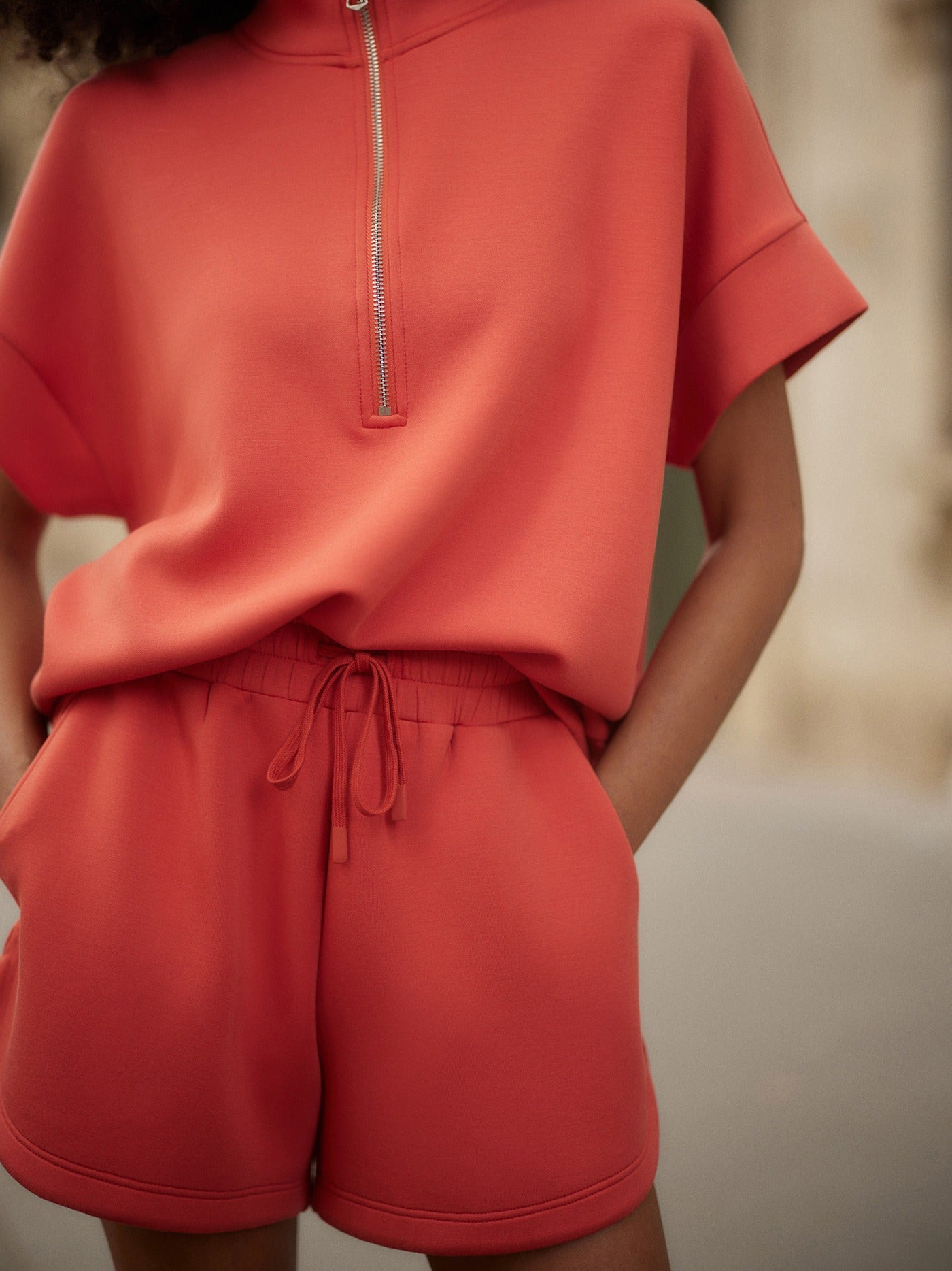 Vyrobeny z ikonického, ultra jemného materiálu DoubleSoft®, tyto šortky s vysokým pasem nabízejí pohodlí pro celodenní nošení. Model Coulter je střih s vysokým pasem, vytvořený z našeho ikonického materiálu DoubleSoft®. Díky čistému elastickému pasu a o něco kratší, více přiléhavé siluetě než model Ollie jsou ideální volbou pro nenucený letní styling. Šortky mají standardní střih – doporučujeme zvolit vaši běžnou velikost. Modelka na fotografii měří 175 cm (81–61–86 cm) a má na sobě velikost S. Velikost S: – výška sedu vpředu: 33 cm – délka vnitřního švu nohavice: 9 cm Složení: 81 % viskóza, 15 % polyester, 4 % elastan Péče: perte v pračce na nízkou teplotu, nebělte, nesušte v sušičce, nečistěte chemicky, žehlete na nízkou teplotu, perte s podobnými barvami, před praním otočte naruby, před praním zavažte šňůrky, po vyprání ihned vyjměte z pračky a sušte rozložené naplocho. Pohodlný a stylový kousek pro každý letní den – objevte na SUMMIT-SPORT.cz.