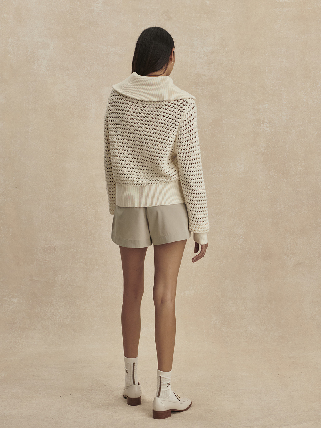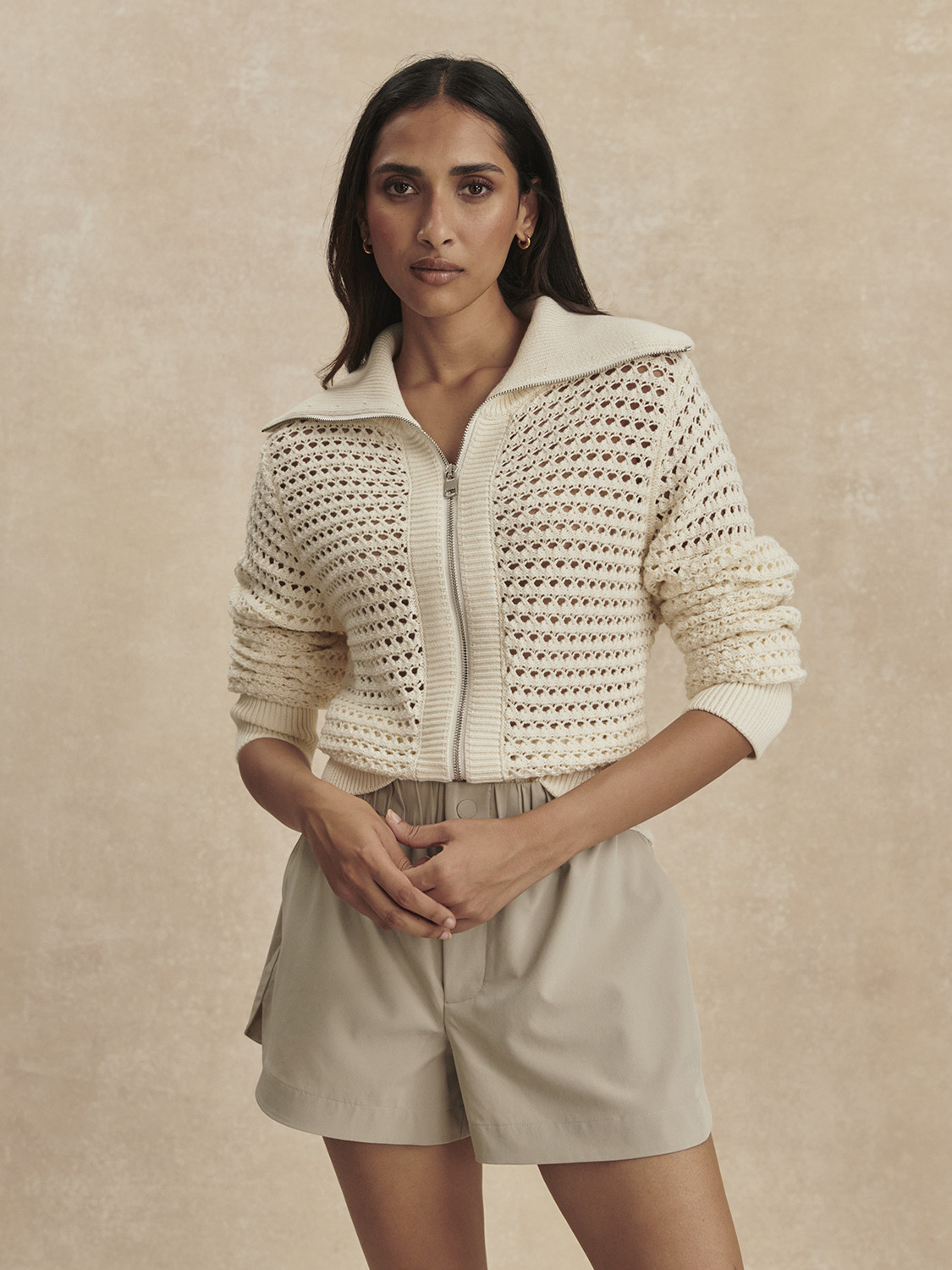Šortky Nila se středně vysokým pasem jsou vyrobeny z lehké měkké strečové tkaniny a mají plně elastický, řasený pas pro perfektní padnutí, stejně jako zapínání na patentky a zip uprostřed předního dílu. Šikmé kapsy na bocích a tvarovaný lem dodávají strukturu uvolněnému střihu nohavic.