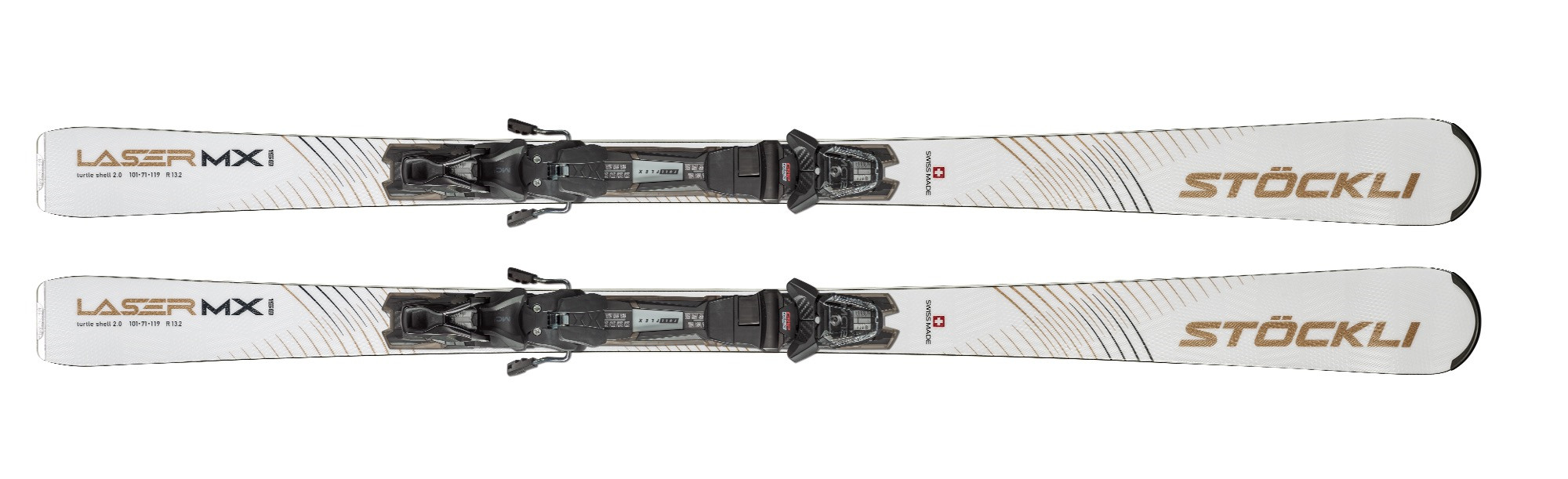 • White/gold Bíládetail Dámské SJEZD - LYŽE Stöckli SET: Stöckli Laser MX, SRT Speed D20, SRT 12