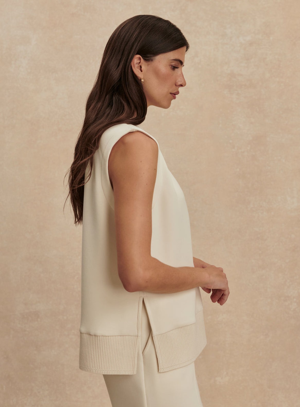 Model Freida přináší současnou interpretaci mikinového topu v prodloužené (longline) siluetě s hlubším V výstřihem. Jemný pointelle pletený lem dodává sofistikovaný detail, zatímco boční rozparky zajišťují volnost pohybu a uvolněný, elegantní vzhled. Prémiový materiál DoubleSoft® vyniká svou hebkostí a komfortem, díky čemuž je tento model ideální jak pro domácí relax, tak pro stylové každodenní outfity.