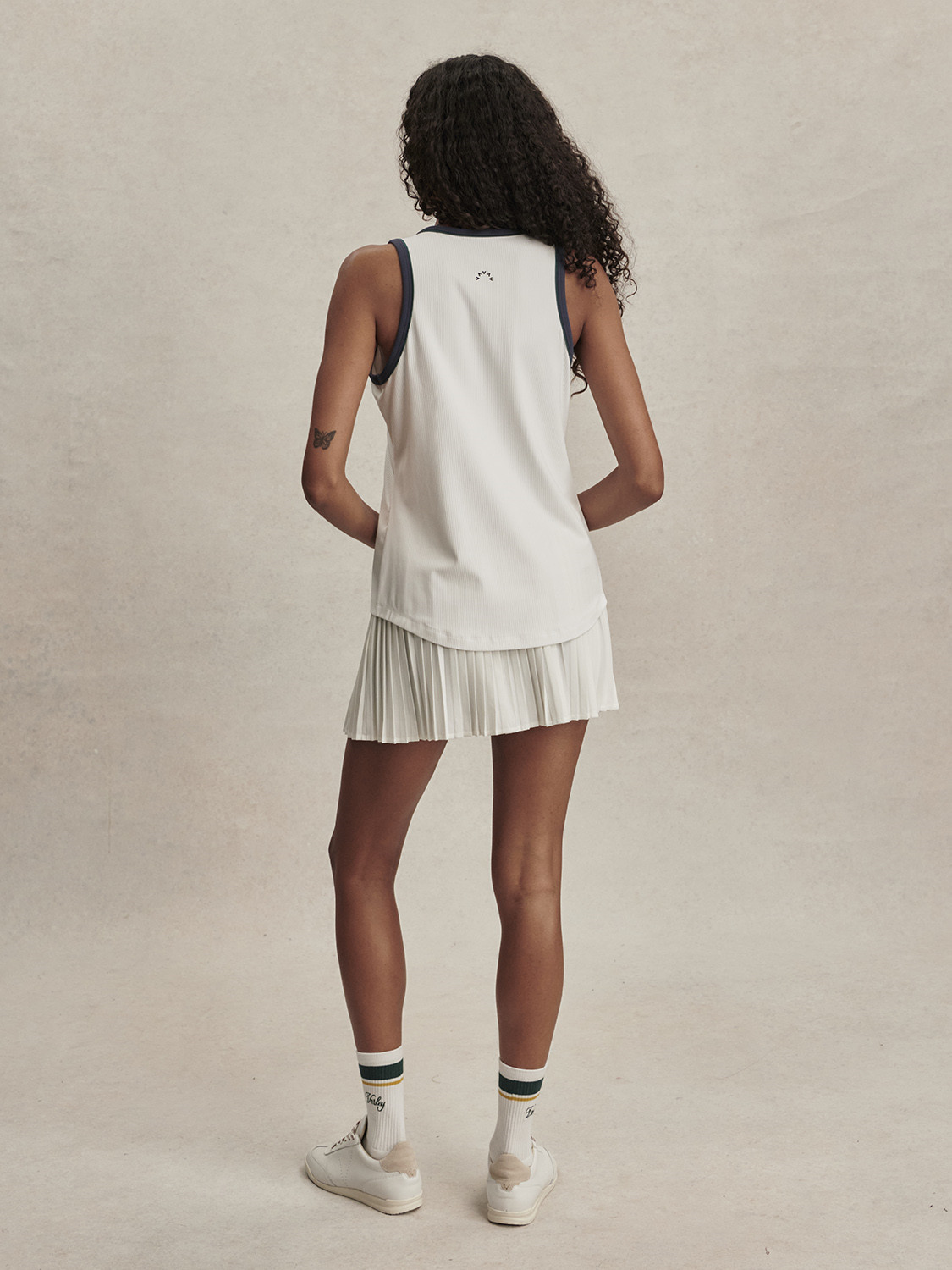 Lehké sportovní tílko stvořené pro pohyb. Seznamte se s modelem Tegan – tílkem z měkkého žebrovaného úpletu, které je ideální pro aktivní dny i víkendové pochůzky. Toto funkční tílko je lehké, krásně padne a je doplněno kontrastním lemováním. Tílko má úzký střih. Vyberte si svou obvyklou velikost. Modelka ve studiu měří 177 cm, má obvod hrudníku 81 cm, obvod pasu 58 cm, obvod boků 86 cm a nosí velikost S. Velikost S – délka vpředu: 59 cm. Složení: 78 % recyklovaný polyamid, 22 % elastan Péče: Prát v pračce na nízkou teplotu, nebělit, nesušit v sušičce, nežehlit, nečistit chemicky, prát s podobnými barvami, ihned vyjmout z pračky