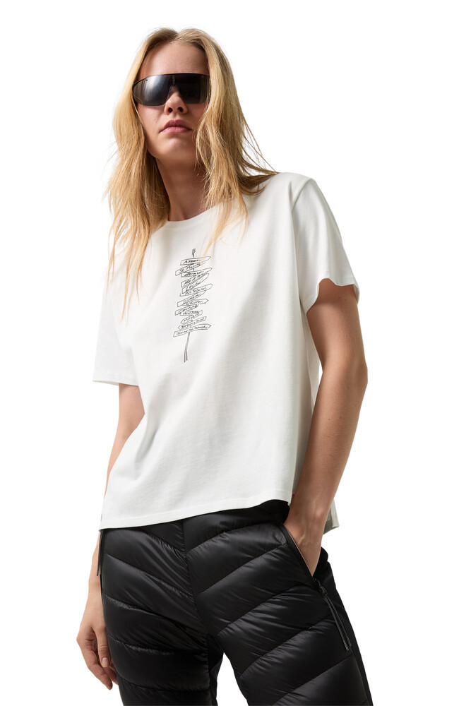 Čistá bavlněná jersey charakterizuje pohodlný styl trička Lotte, který podtrhuje alpský potisk. Boční rozparky a mírně delší zadní lem s nášivkou s vlajkou dodávají tričku další akcenty.
