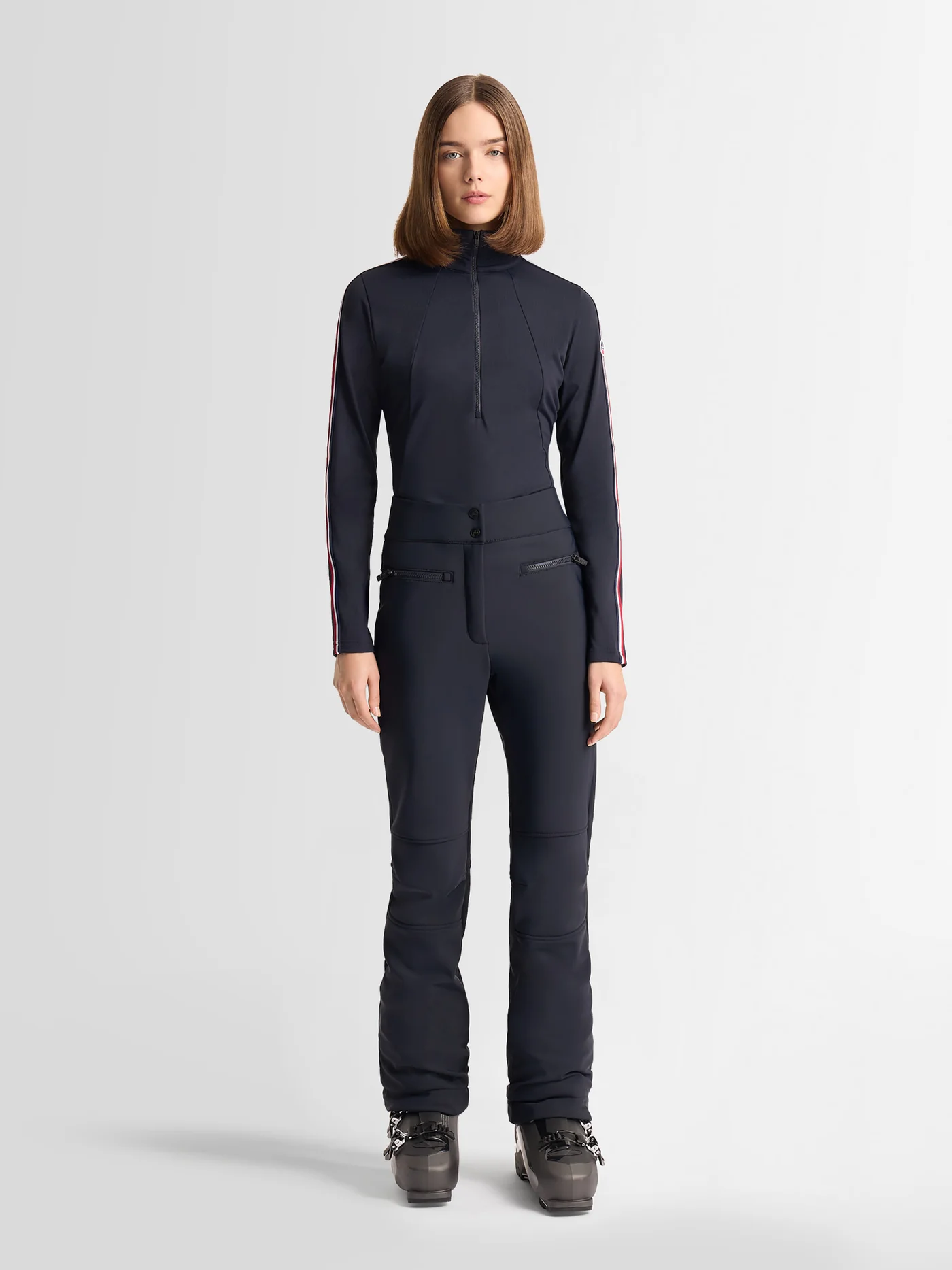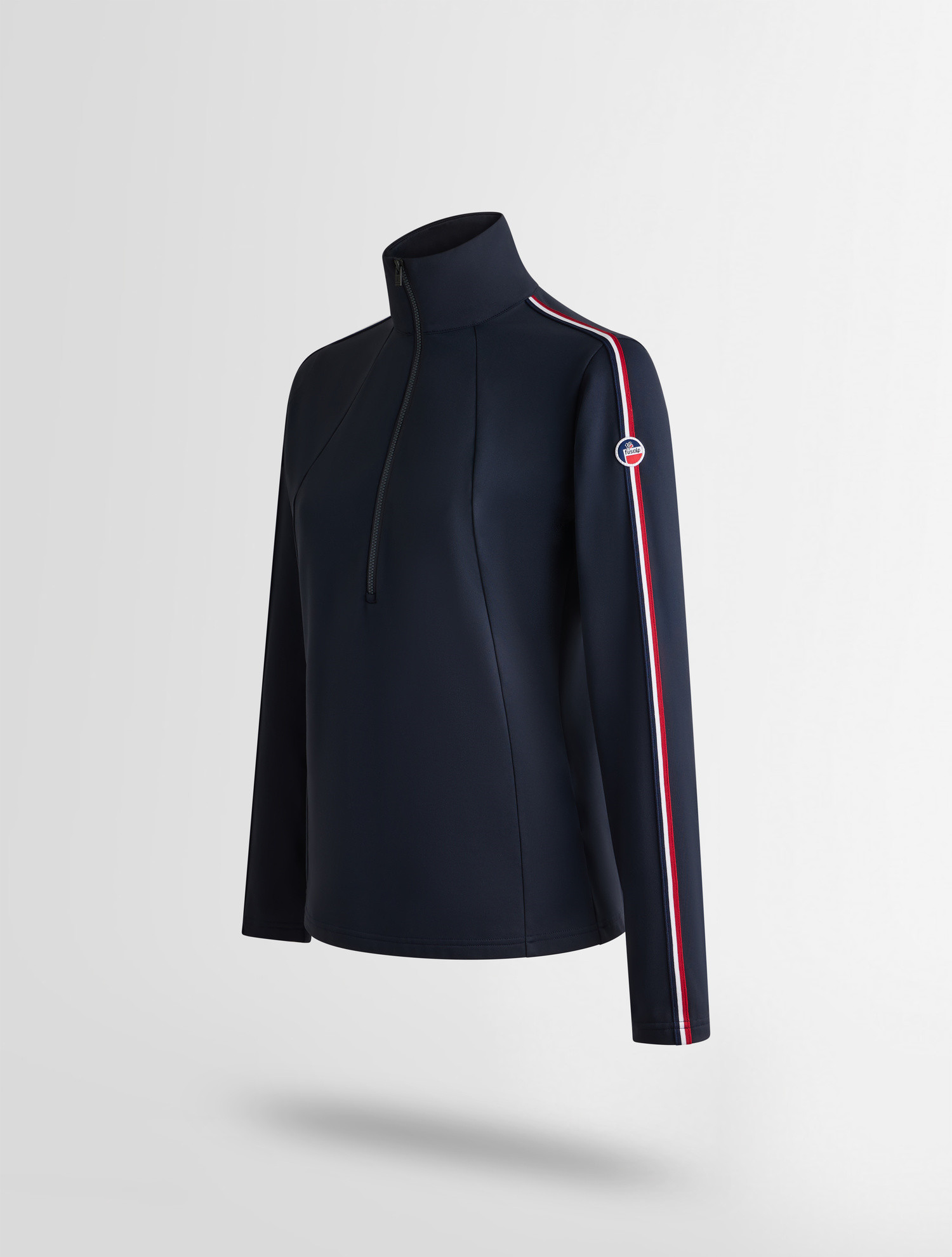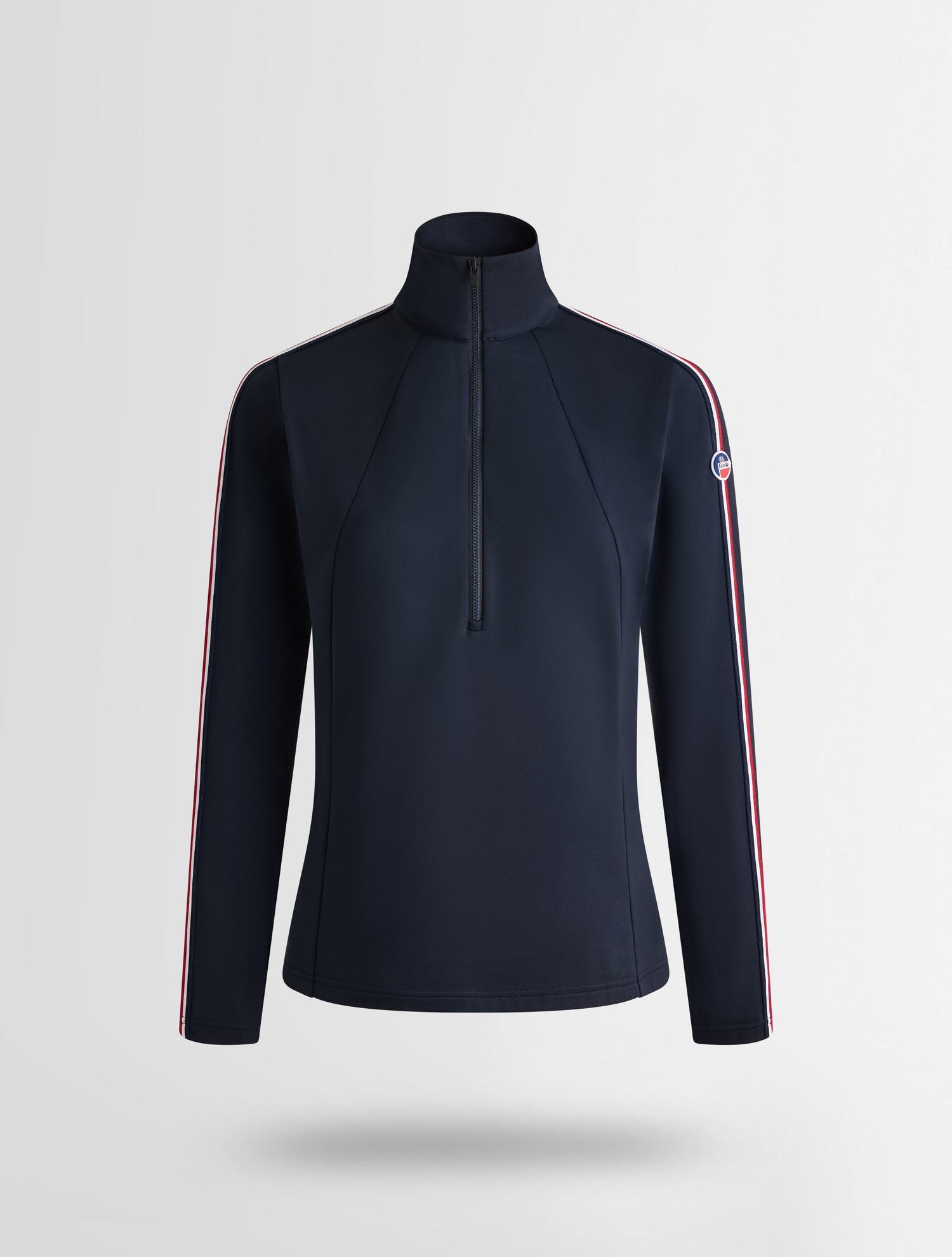 Dámské termo tričko Stellia nabízí těsný, atletický střih, který přiléhá k tělu a slouží jako efektivní základní vrstva. Vyšší límec a zapínání na poloviční zip doplňují designové prvky trikolory a loga Fusalp.