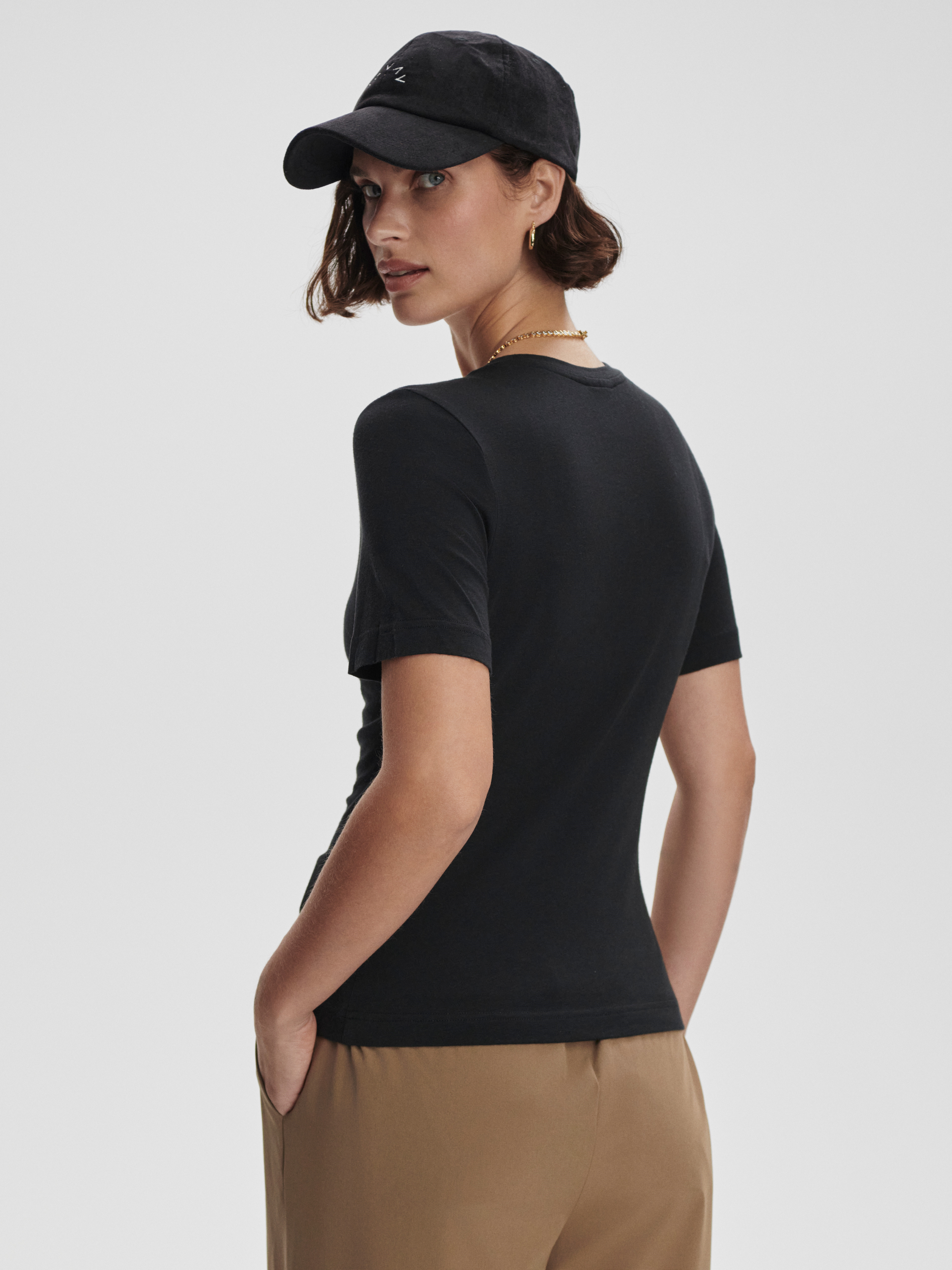 Varley Regina Fitted Tee je nadčasový a univerzální dámský top, který se rychle stane základem vašeho šatníku. Ušité z jemného směsového úpletu s vysokým podílem modalu a bavlny, perfektně obepíná postavu a vytváří přirozeně lichotivou siluetu. Elegantní střih s kulatým výstřihem a vsazenými rukávy z něj dělá ideální volbu pro každodenní outfity.