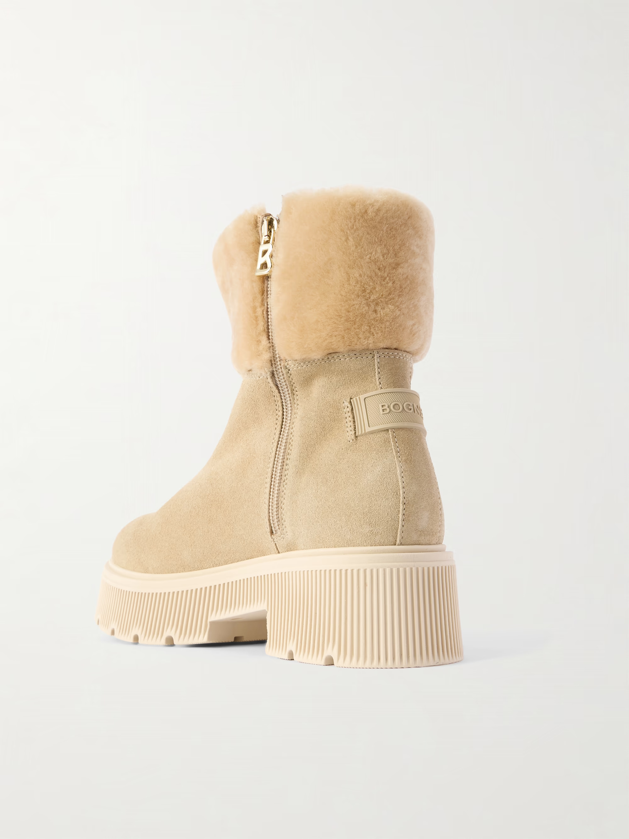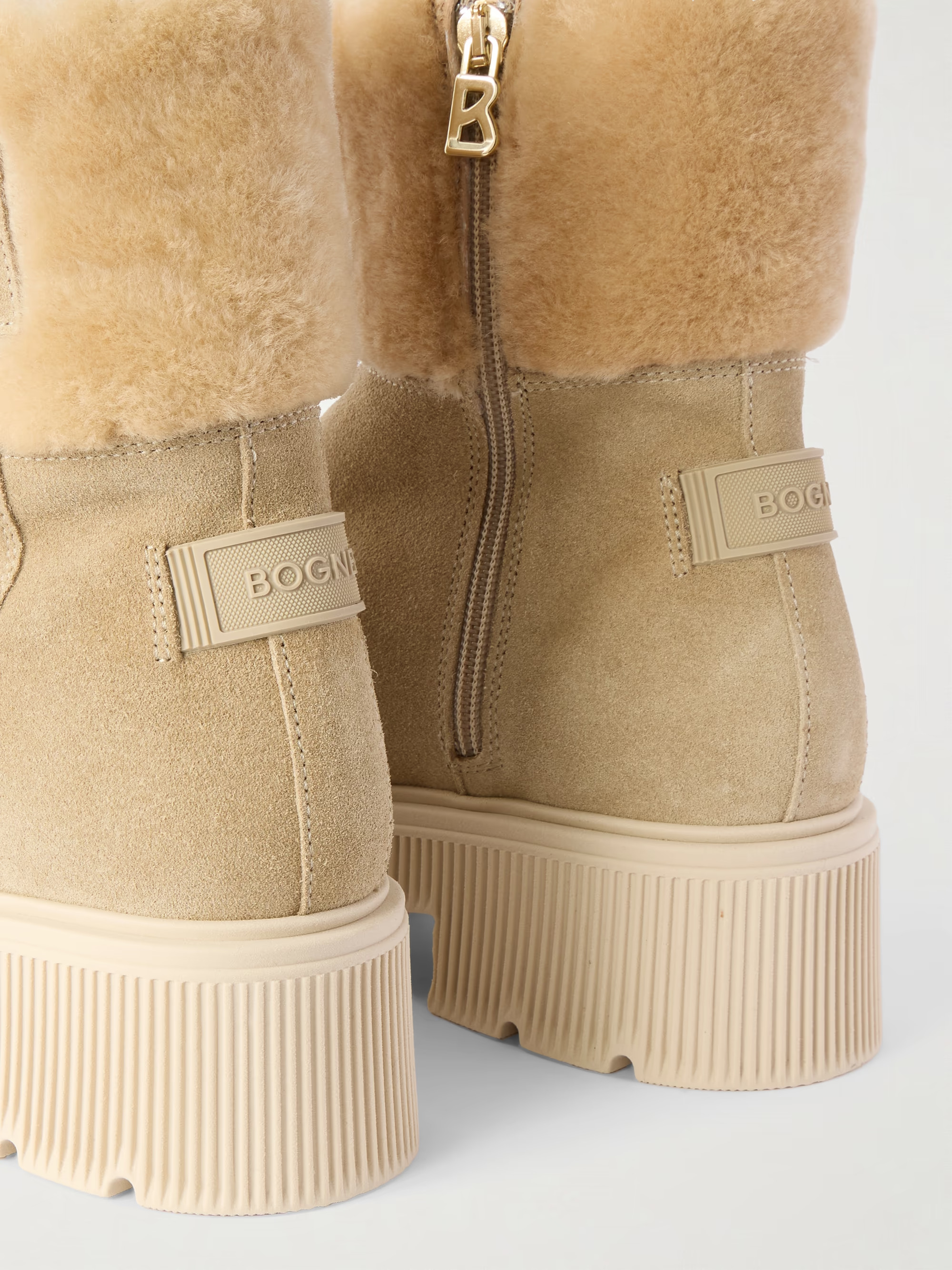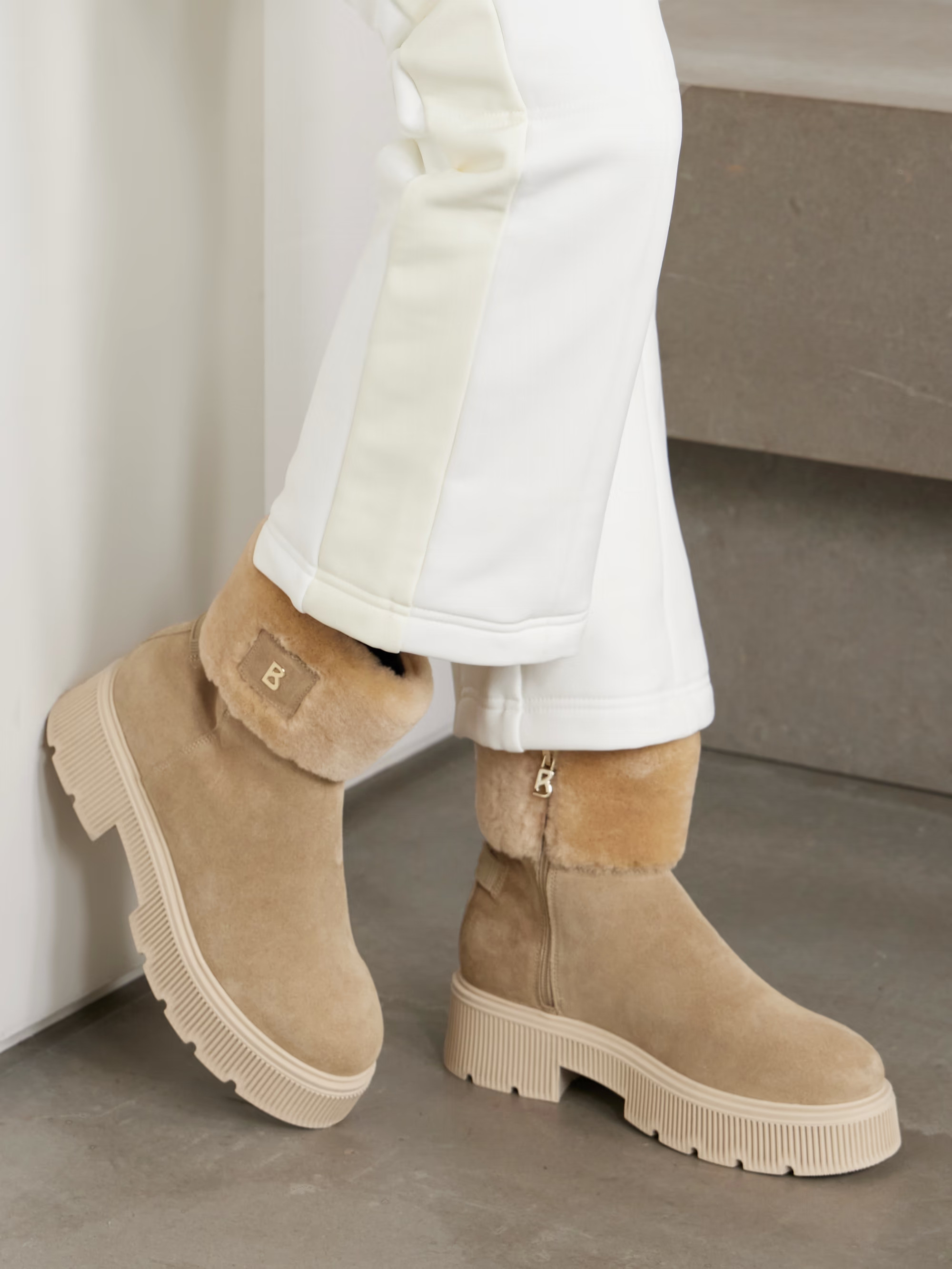 Středně vysoké boty z broušené telecí kůže a ovčí kůže