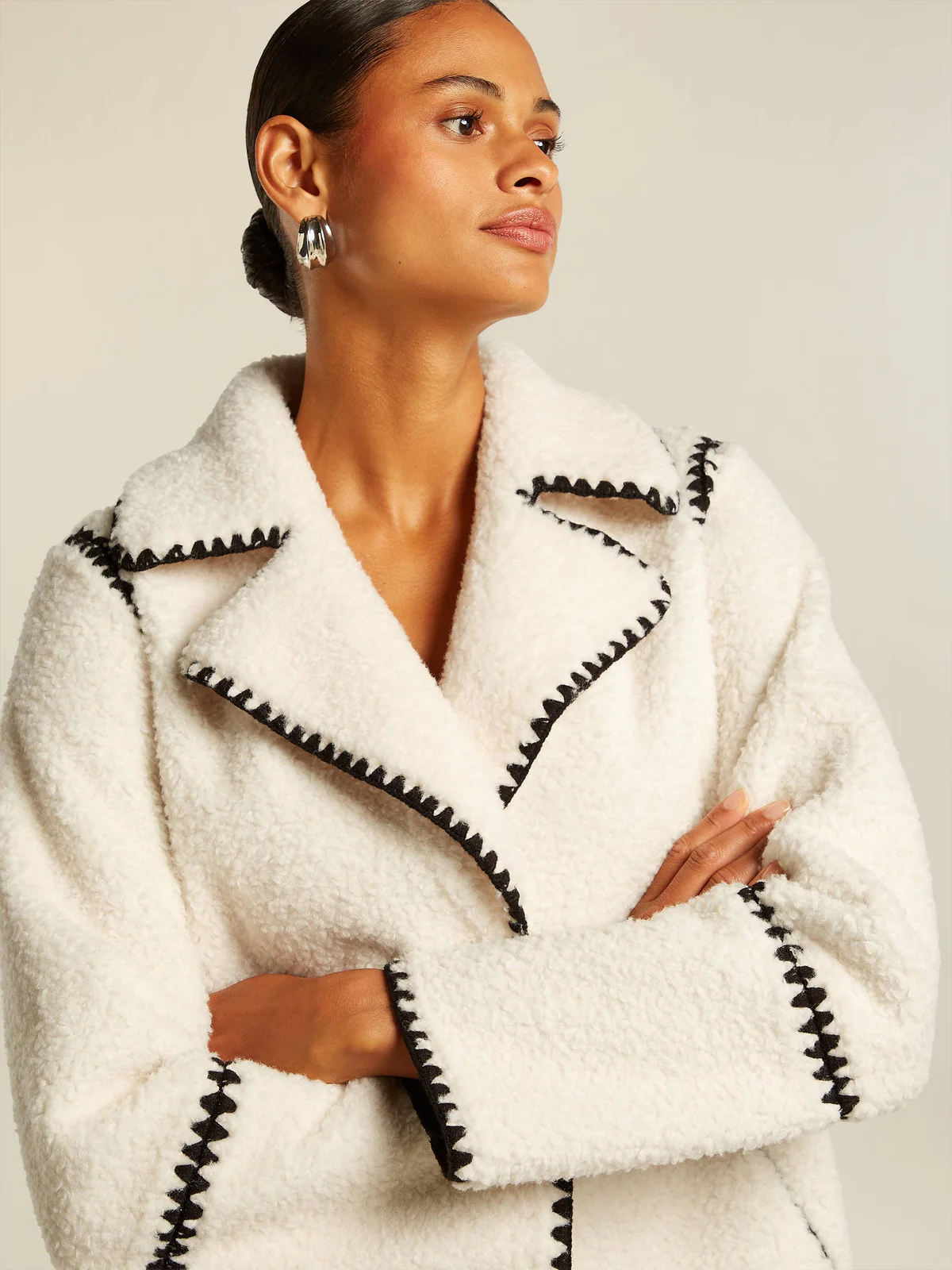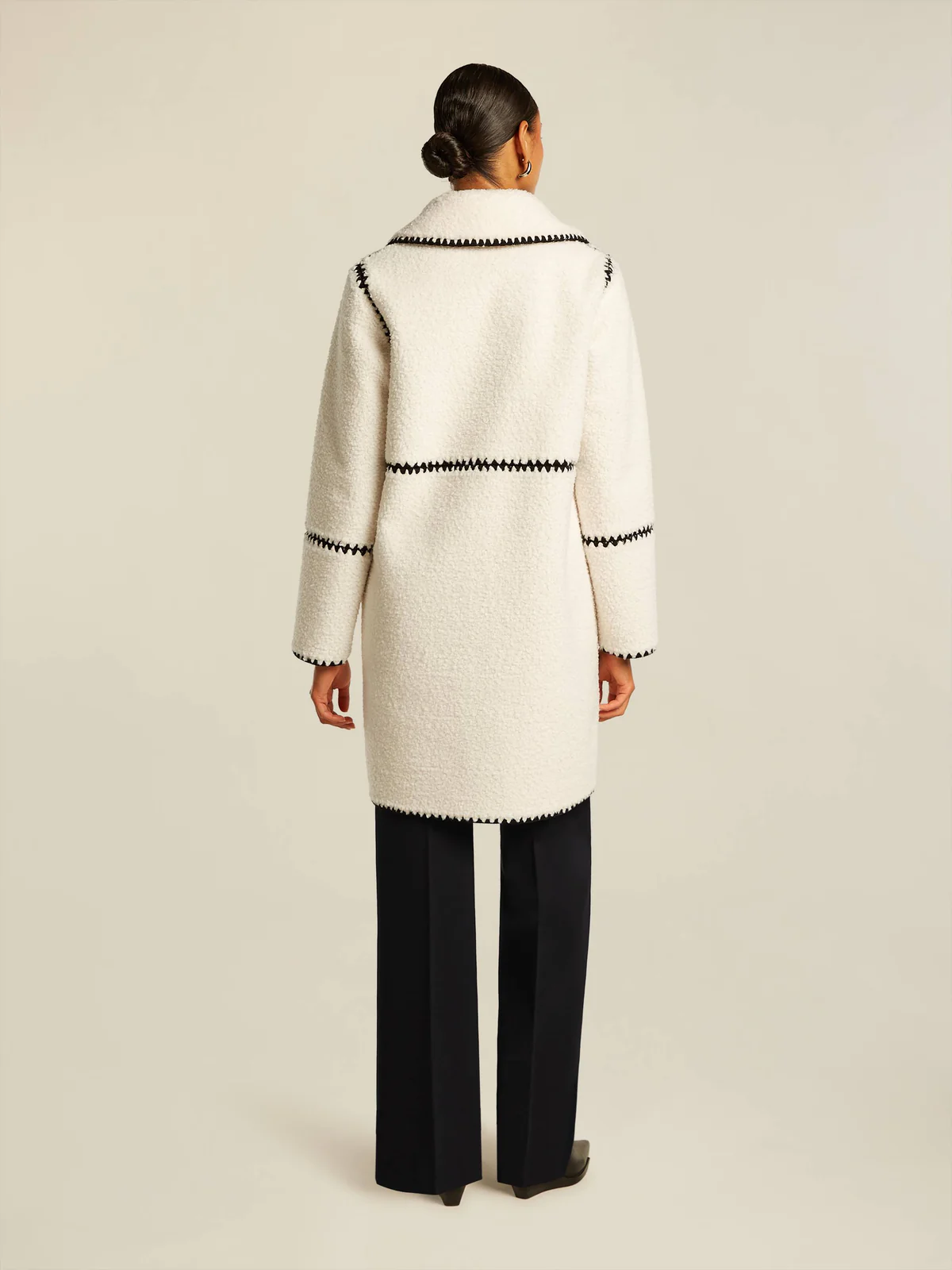 Popis:Měkký medvídkový oboustranný kabát s vyšívanými černými kontrastními detaily