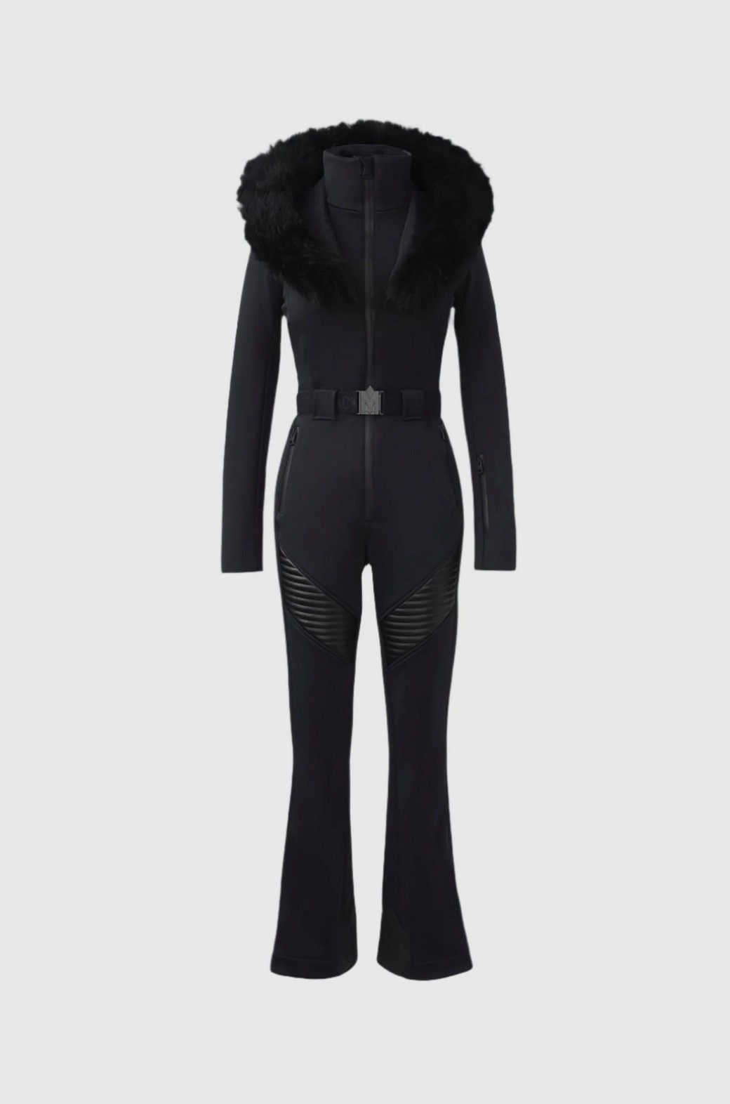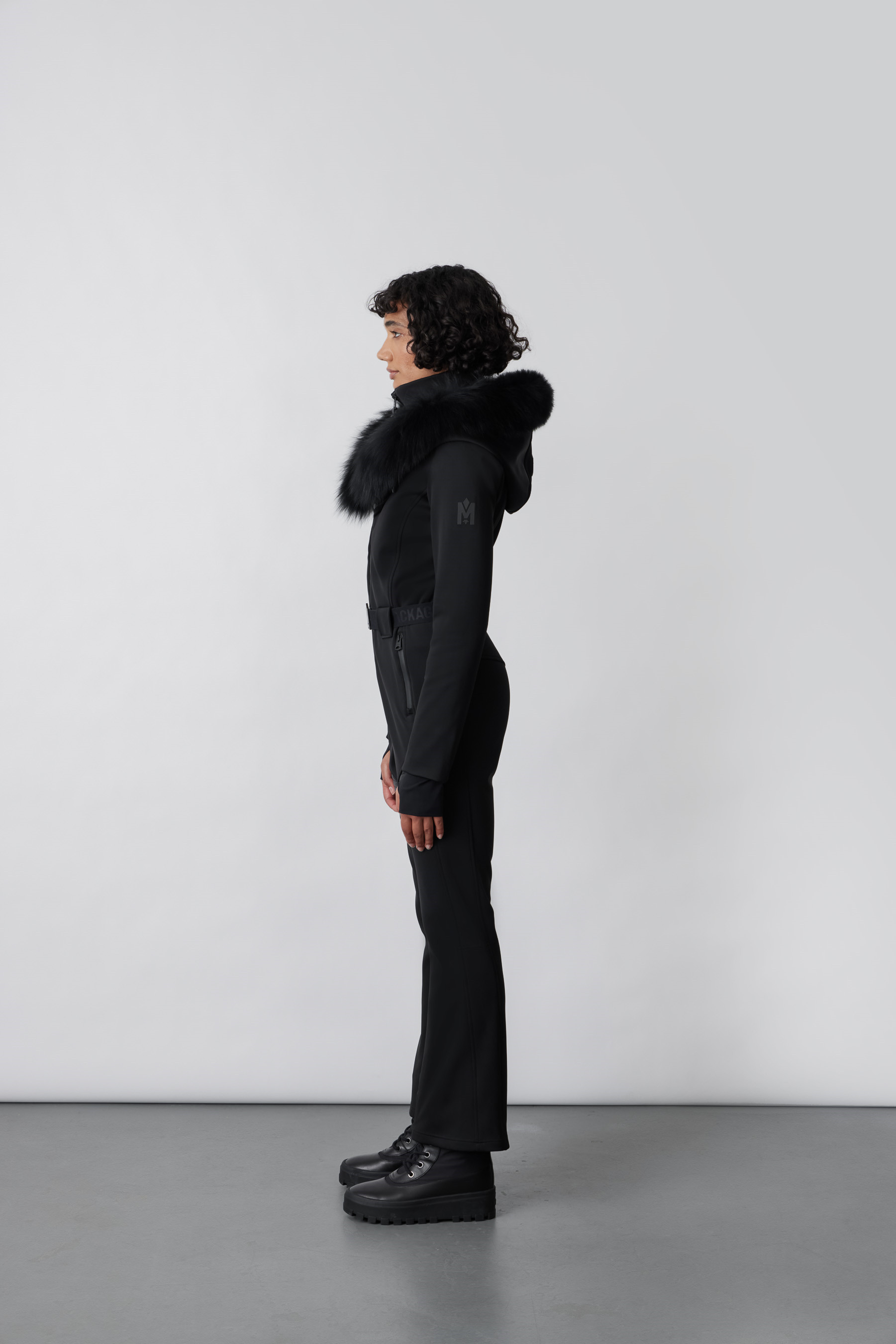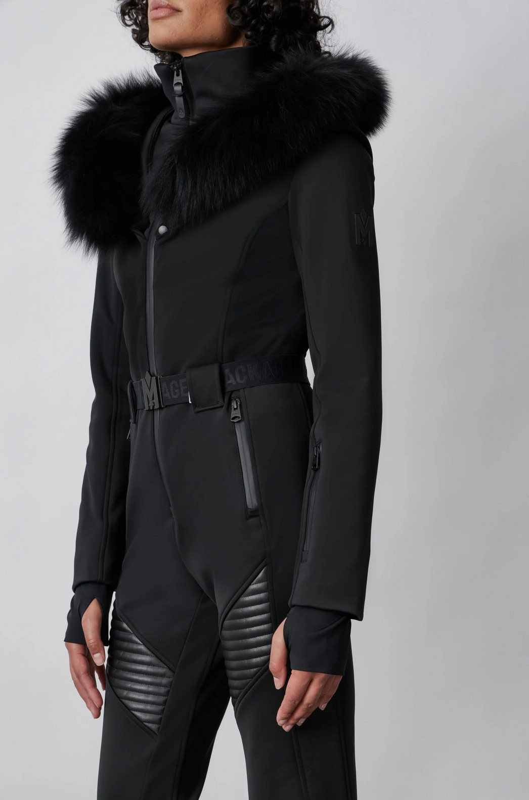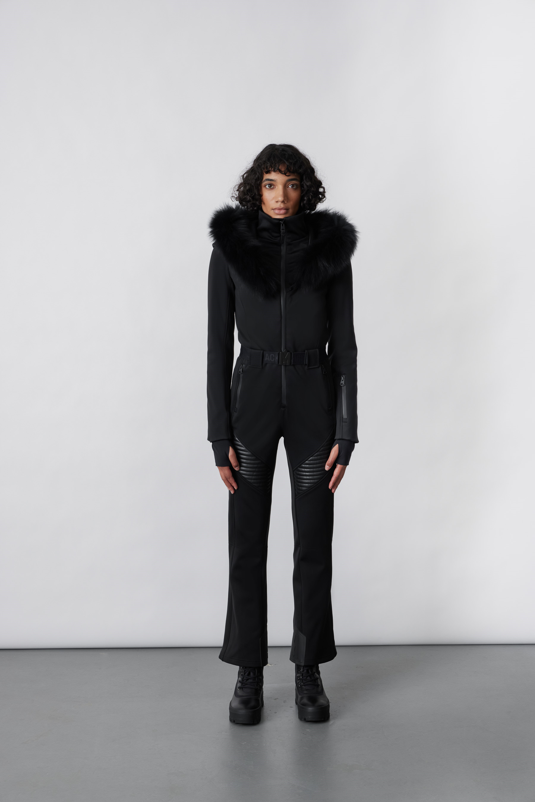 Popis:ELLE-Z – lyžařský overal z techno fleecu s odnímatelnou kapucí a pravým kožešinovým lemem
