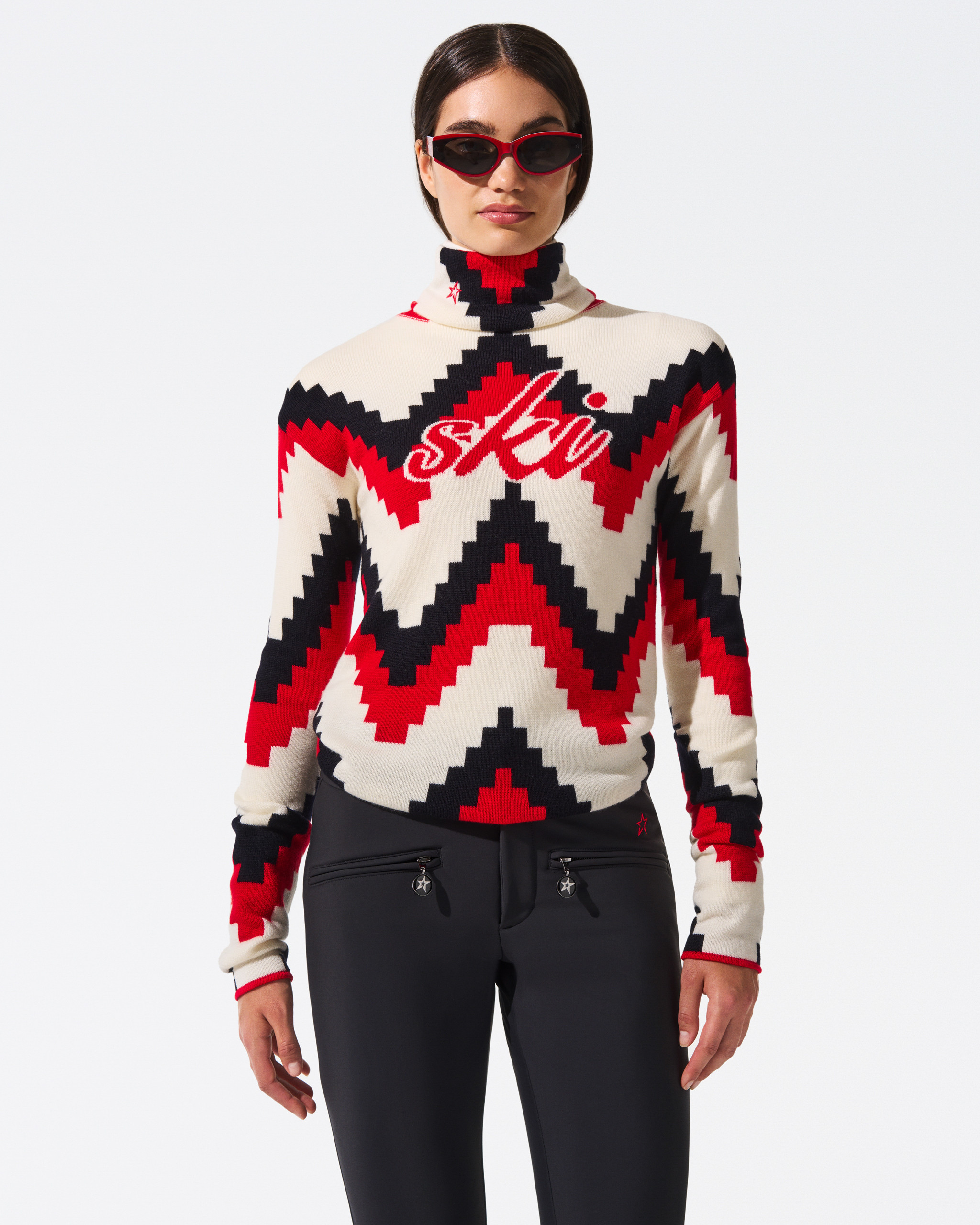 • Chevron print - red Červenádetail Dámský svetr Perfect Moment chevron roll neck sweater
