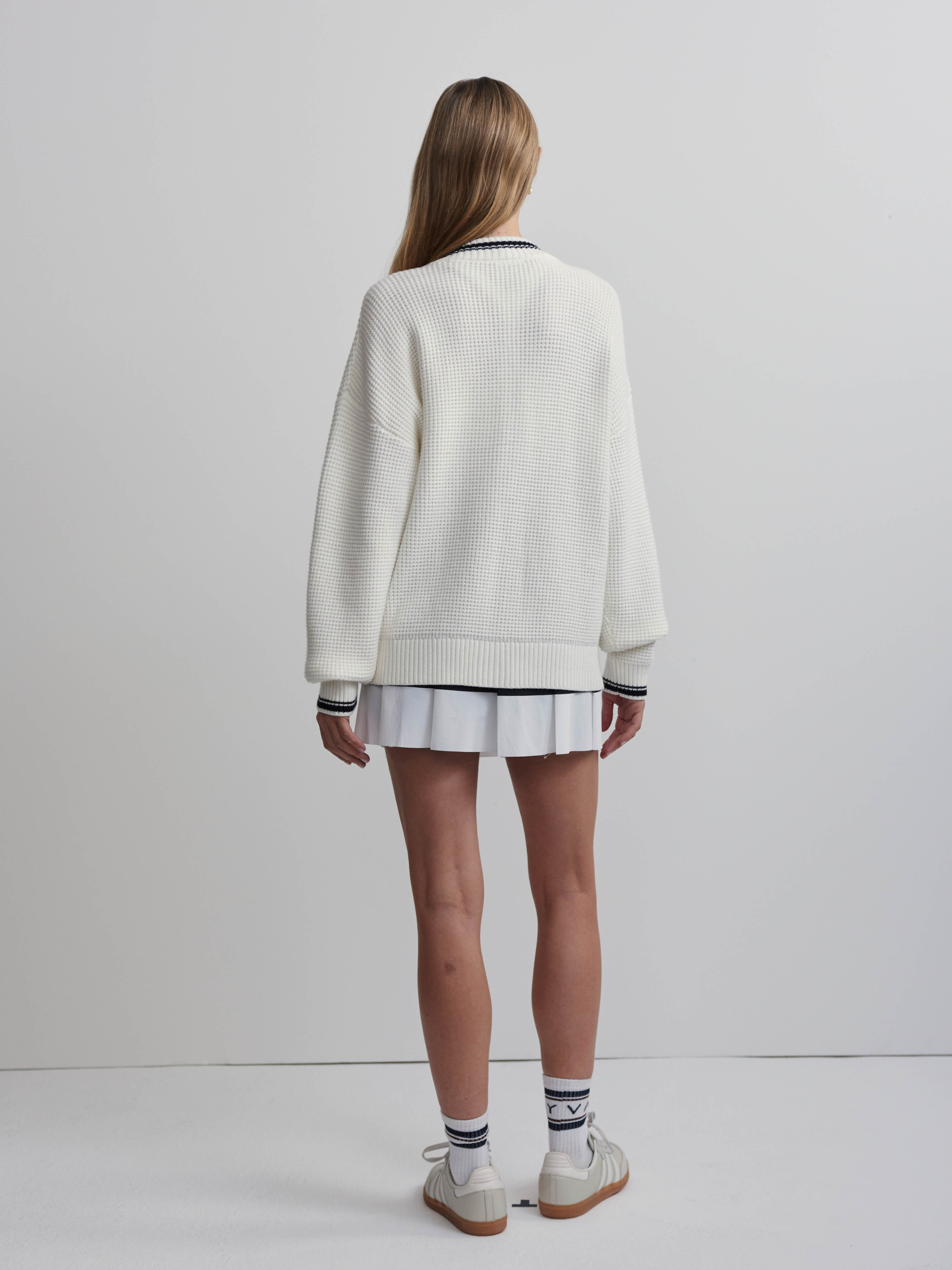 • White Bíládetail Dámský svetr Varley Coniston Boxy Knit Cardigan