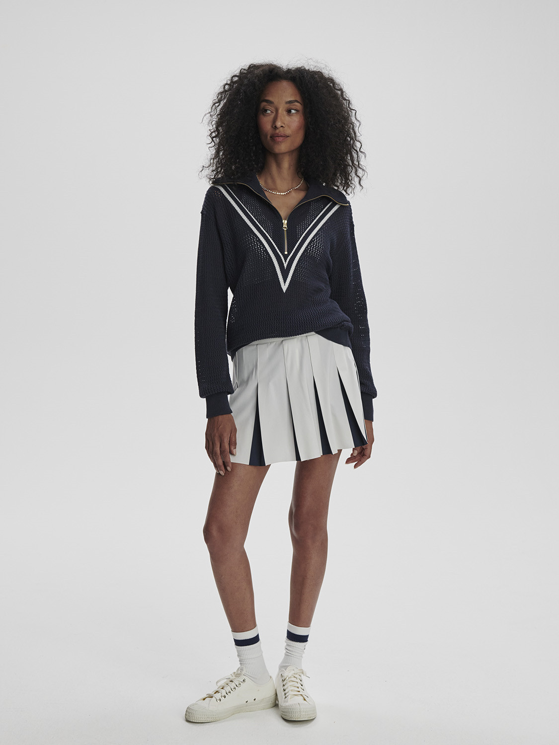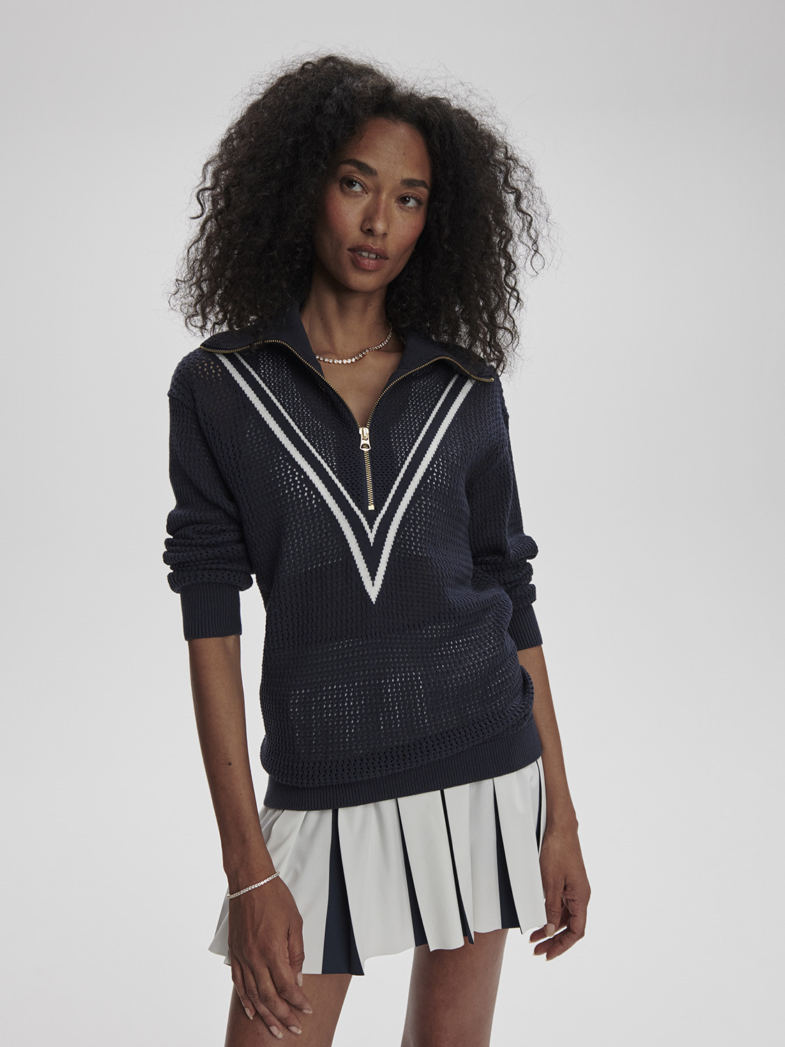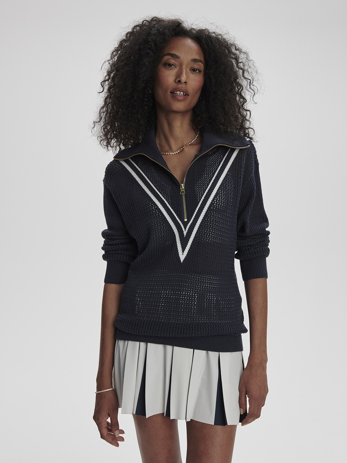 Inspirovaný bestsellerem Calva, tento pletený svetr má oversized límec a dvojité pruhy. Vyrobený z naší prémiové pleteniny Honeycomb Knit ze 100% bavlny pro prodyšnost a pohodlí.
