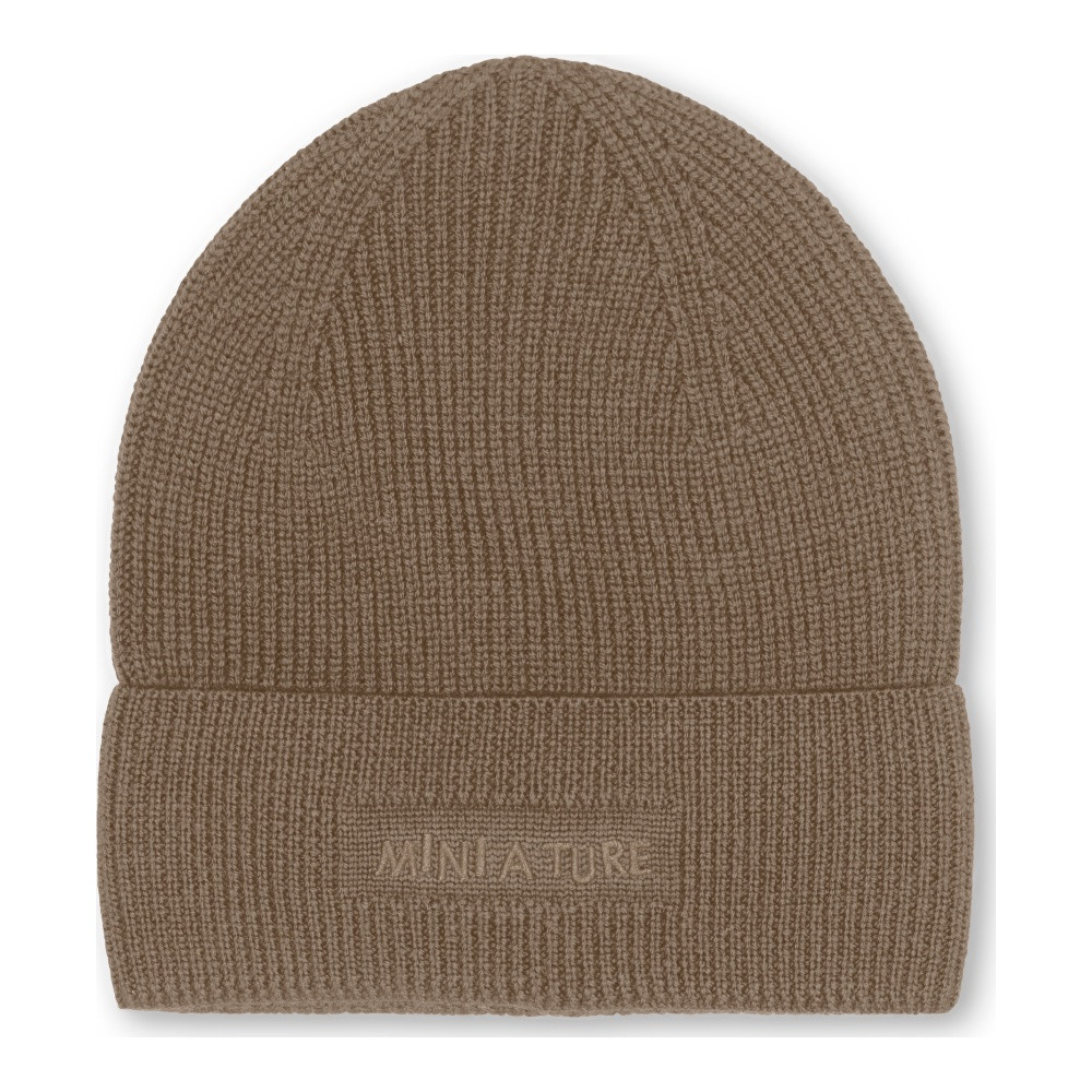Čepice MINI A TURE z žebrované italské merino vlny s vyšitým logem vpředu.