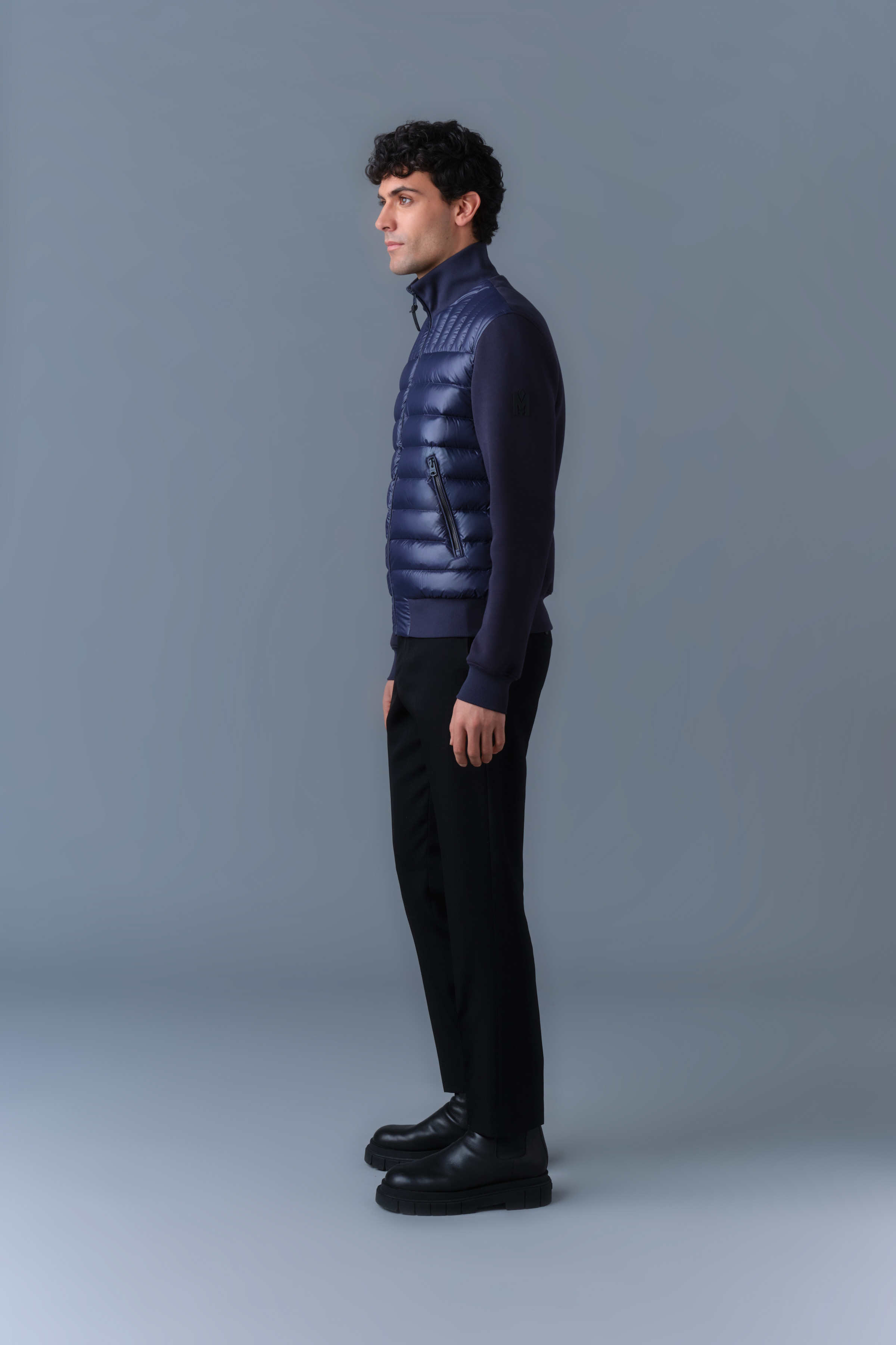COLLIN-R – péřová bomber bunda z kombinovaných materiálů s Nano Down výplní **COLLIN-R** je pánská přechodová bunda v klasickém bomber stylu. Precizně střižená do slim fit siluety, kombinuje přední díl z recyklovaného lesklého nano peří s rukávy a zadním dílem z měkkého oboustranného žerzeje. Žebrovaný stojáček a lemy přidávají na funkčních detailech a hřejivosti. Moderní více-sezónní vrstva s nenuceným stylem. * Hybridní přechodová bunda * Bomber střih * Přední díl z recyklovaného lesklého lehkého nano peří * Rukávy a záda z oboustranného žerzeje * Zapínání na zip po celé délce * Žebrovaný stojací límec, spodní lem a manžety * Boční kapsy na zip * Nášivka s logem M na levém rukávu * Možno prát v pračce * Slim fit **VELIKOST & STŘIH** * **SLIM** – náš charakteristický střih, přiléhavý k tělu * Navrženo pro nošení přes lehké vrstvy, přesto poskytuje teplo * Pro vrstvení s tlustšími kousky doporučujeme zvolit o jednu velikost větší * Model měří 187 cm a má velikost L * Délka bundy od ramene po spodní lem: 67 cm **SLOŽENÍ & POKYNY K ÚDRŽBĚ** * Vrchní materiál: 53 % bavlna, 47 % polyester * Kombinovaný materiál 1: 100 % recyklovaný nylon * Podšívka: 100 % recyklovaný nylon * Výplň: 90 % kachní peří s certifikací GRS, 10 % prachové peří * Vodoodpudivá a voděodolná úprava **Údržba:** * Zapnout zipy, odepnout kožešinu, sundat taháček zipu * Prát naruby v domácí pračce při max. 40 °C, normální program * Používat jemný prací prostředek, ihned po vyprání vyjmout * Nenechávat namočené * Sušit v sušičce na nízkou teplotu s tenisovými míčky, dokud nebude zcela suchá (1–3 hodiny) * Neprat chemicky ve vodě, nebělit, neždímat, nežeh­lit, netisknout * Suché čištění pouze u specialisty na kůži, výhradně olejovým rozpouštědlem * Nepoužívat perchlorethylen