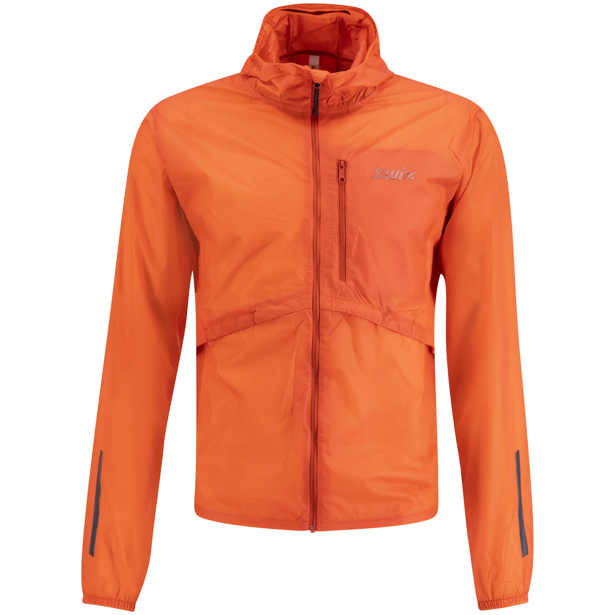 Superlehká prodyšná běžecká větrovka pro jarní a letní běžecké tréninky. Ideální společník, kterého můžete mít s sebou kdykoli, protože se vejde do kapsy jako pohotovostní bunda. Tato bunda na běhání je anatomicky střižená a krásně sedí na tělě. Je vybavena kapucí, které díky gumičce v lemu taky krásně sedí na hlavě i při intenzivním pohybu. Tuto bundu tak lze využít při náhlé změně počasí, kdy vás překvapí vítr a déšť během tréninku, materiál bundy je totiž ošetřen TOKO DWR povrchovou úpravou proti vodě. Na bedrech a bocích jsou větrací otvory pro maximální prodyšnost. Bunda má poměrně velkou náprsní kapsu například na mobilní telefon a navíc ji lze do této kapsy sbalit. Spodní lem a manžety jsou vybaveny gumou. Na kapuci, zádech a rukávech jsou reflexní prvky pro maximální viditelnost za horších světelných podmínek. Materiál: 100% polyamid