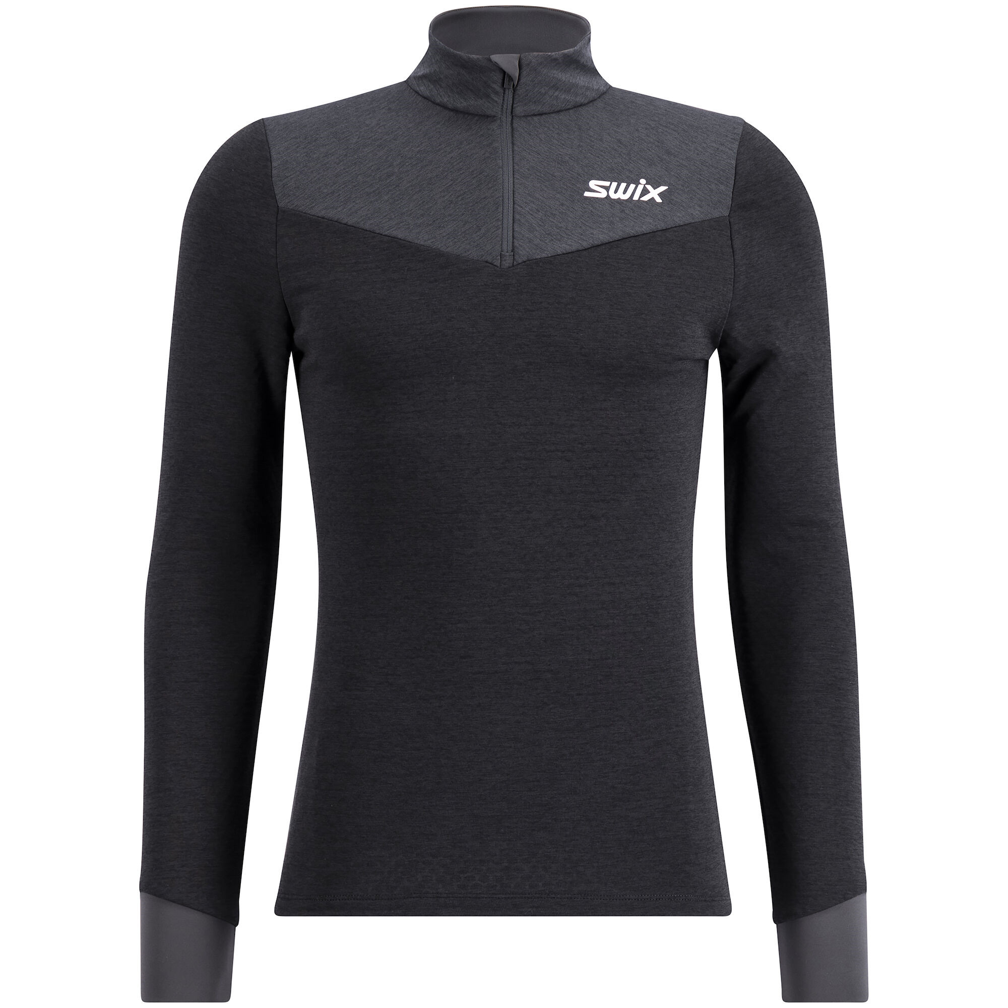 Zateplovací funkční vrstva se stojáčkem a polovičním zipem, navržena pro použití při běhu na lyžích ve vysoké intenzitě v chladnějších dnech. Mikinu lze použít na první vrstvy nebo přímo na kůži. Hlavní materiál má dobrou úroveň pružnosti, rychle schne a má počesanou rubovou stranu. Je konstruován se zipem u krku pro snadné odvětrání, pokud potřebujete uvolnit teplo během aktivity. Elastické manžety na spodním lemu.