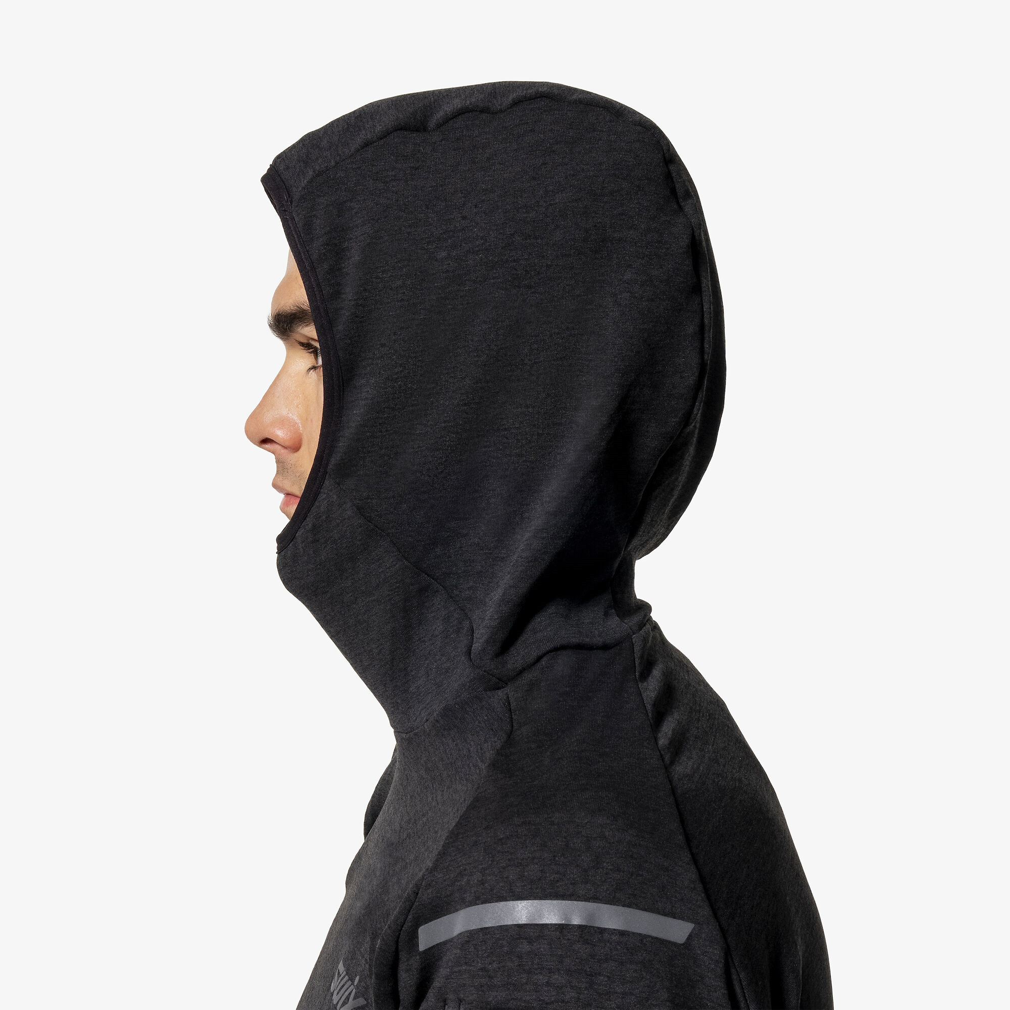 Vkusná funkční běžecká mikina, ideální druhá vrstva do chladnějších dnů. Funkční materiál umožní efektivní odvod potu od těla, ale zároveň, díky vnitřnímu flísu ve tvaru plástve, dobře izoluje tělesné teplo. Materiál je hodně strečový ve čtyřech směrech, čili mikina hezky sedí na tělě. Mikina má kapuci a vysoký límec, střih mikiny je volnější. Manžety rukávů jsou opatřeny otvory pro hodinky, případně na palce. Mikina je opatřena reflexním potiskem.Materiál: 94% polyester / 6% spandex
