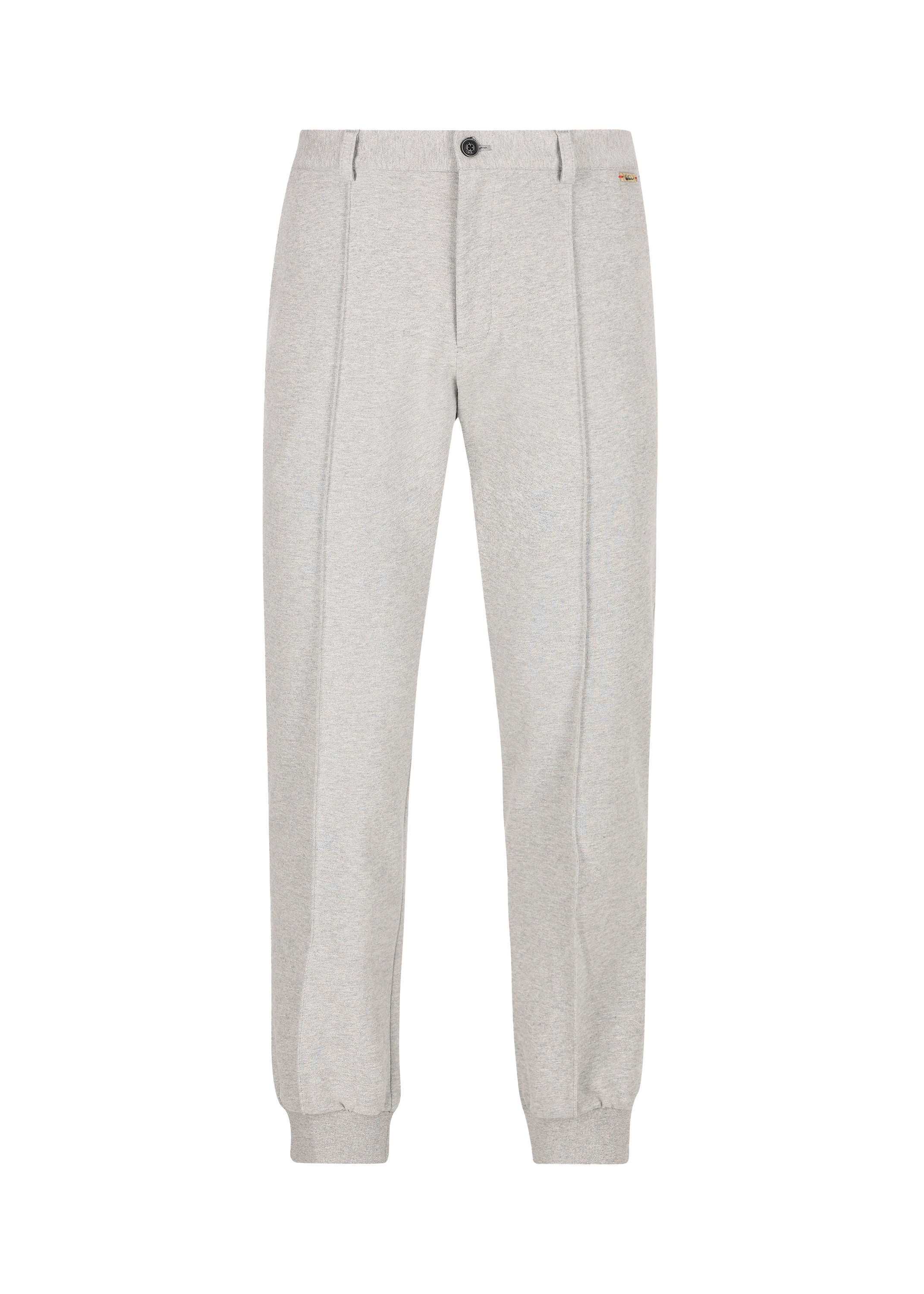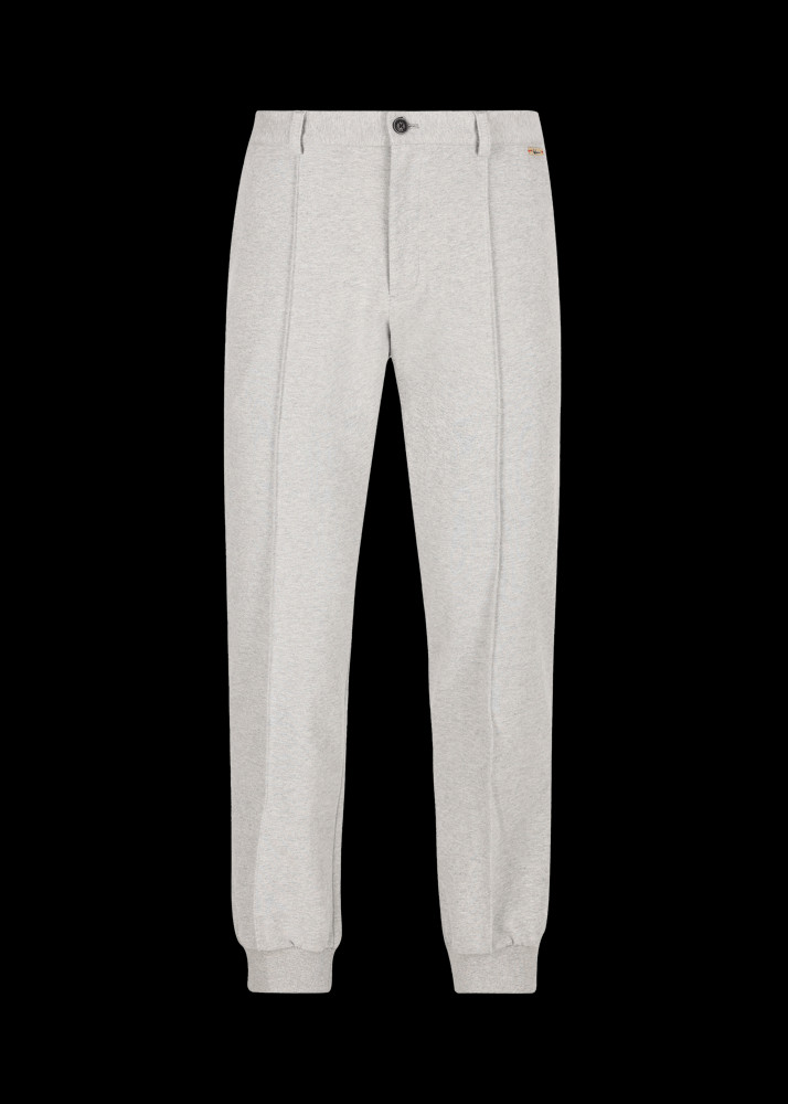Tyto kalhoty s regular fit střihem jsou vyrobeny z čisté bavlny v pohodlné jersey kvalitě s příjemným hmatovým pocitem. Jejich charakteristickým znakem je reliéfní středový šev, žebrované manžety jsou pohodlným a ležérním detailem.