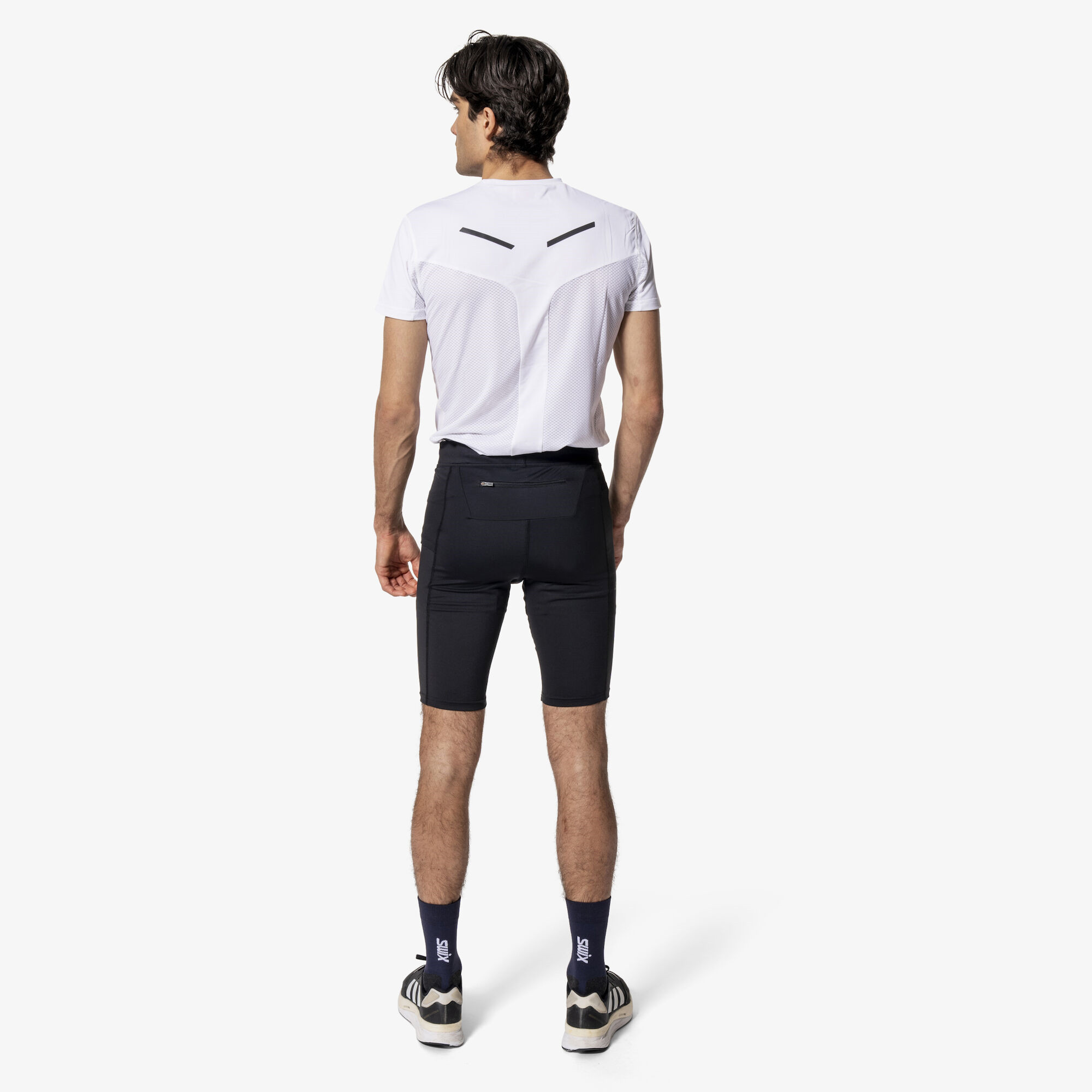 Klasické pánské krátké běžecké elasťáky z funkčního, čtyřsměrně strečového materiálu. Šortky mají širší pas se šňůrkou pro regulaci. Vzadu je malá kapsa na zip a na levém stehně z boku je druhá, poměrně prostorná kapsa například na doplňky výživy na delší běh. Tyto běžecké šortky mají anatomický střih, takže perfektně sedí. Jako správné běžecké kraťasy jsou doplněny o reflexní prvky pro bezpečný běh za horších světelných podmínek Materiál: Hlavní materiál: 82% polyester / 18% spandex. Další materiál: 59% Polyamid / 41% elastan.