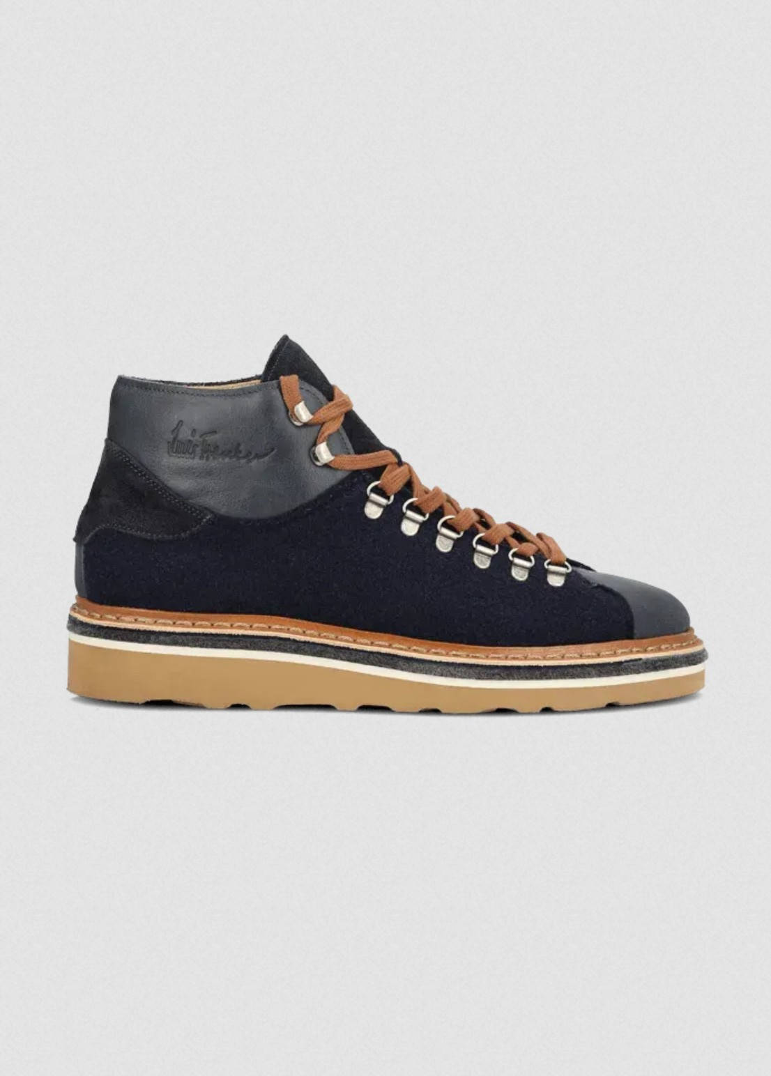 Zvláštnosti: Svršek z vlněného filcu, boční a špička z nappa kůže, pata a jazyk ze semiše s reliéfním logem Luis Trenker, prošívaný design, ručně vyrobené v tradiční obuvnické továrně v Itálii