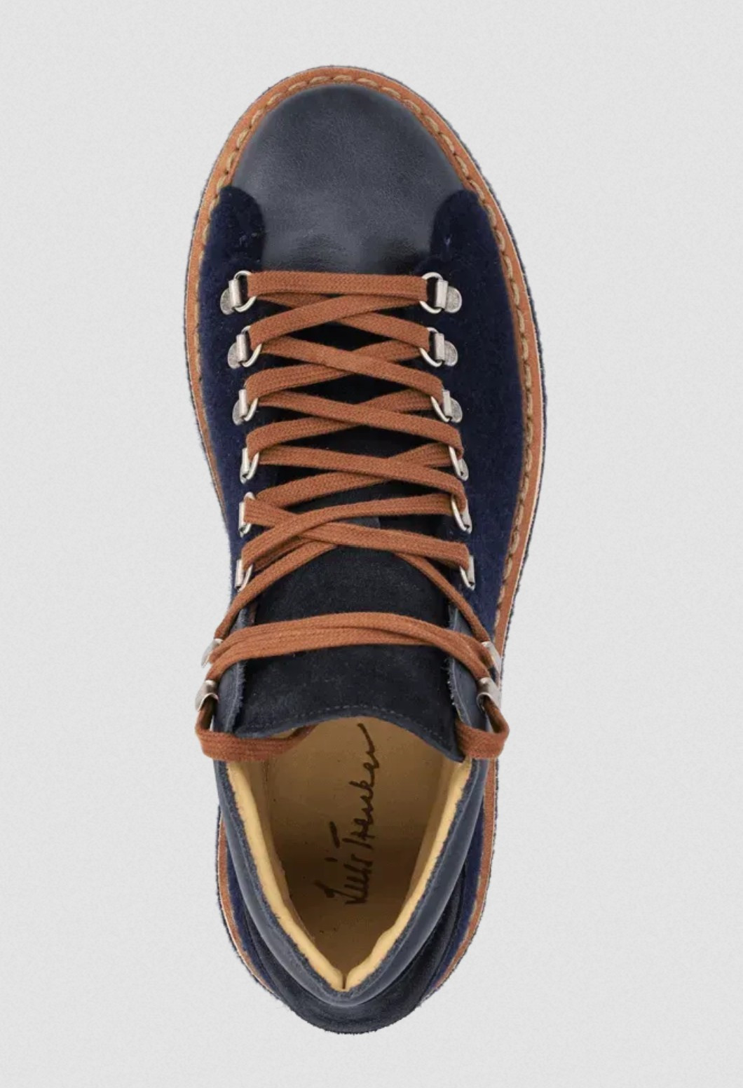 Kožené a plstěné boty Lugionata Tyto ručně vyráběné tenisky sahají nad kotník a zaujmou neobvyklou kombinací materiálů, kterou tvoří nappa kůže, semiš a vlněný filc. Mezi jejich charakteristické znaky patří prošívaný design a robustní podrážka Vibram. Výška: Nad kotník Šněrování: Klasické šněrování s kovovými očky Podrážka: Robustní podrážka Vibram Stélka: Prodyšná korková stélka Zvláštnosti: Svršek z vlněného filcu, boční a špička z nappa kůže, pata a jazyk ze semiše s reliéfním logem Luis Trenker, prošívaný design, ručně vyrobené v tradiční obuvnické továrně v Itálii Složení: 50 % vlna, 50 % kůže Aby vám vaše oblíbené boty dlouho vydržely, je třeba o ně správně pečovat: Hladkou kůži můžete ošetřit běžnou krémovou pastou na boty nebo neutrálním lesklým sprejem, semišové boty byste před prvním nošením měli ošetřit impregnačním sprejem, který je ochrání před špínou a vlhkostí. Na trhu je také řada speciálních přípravků na péči o semiš, které můžete použít v případě, že se boty zašpiní.