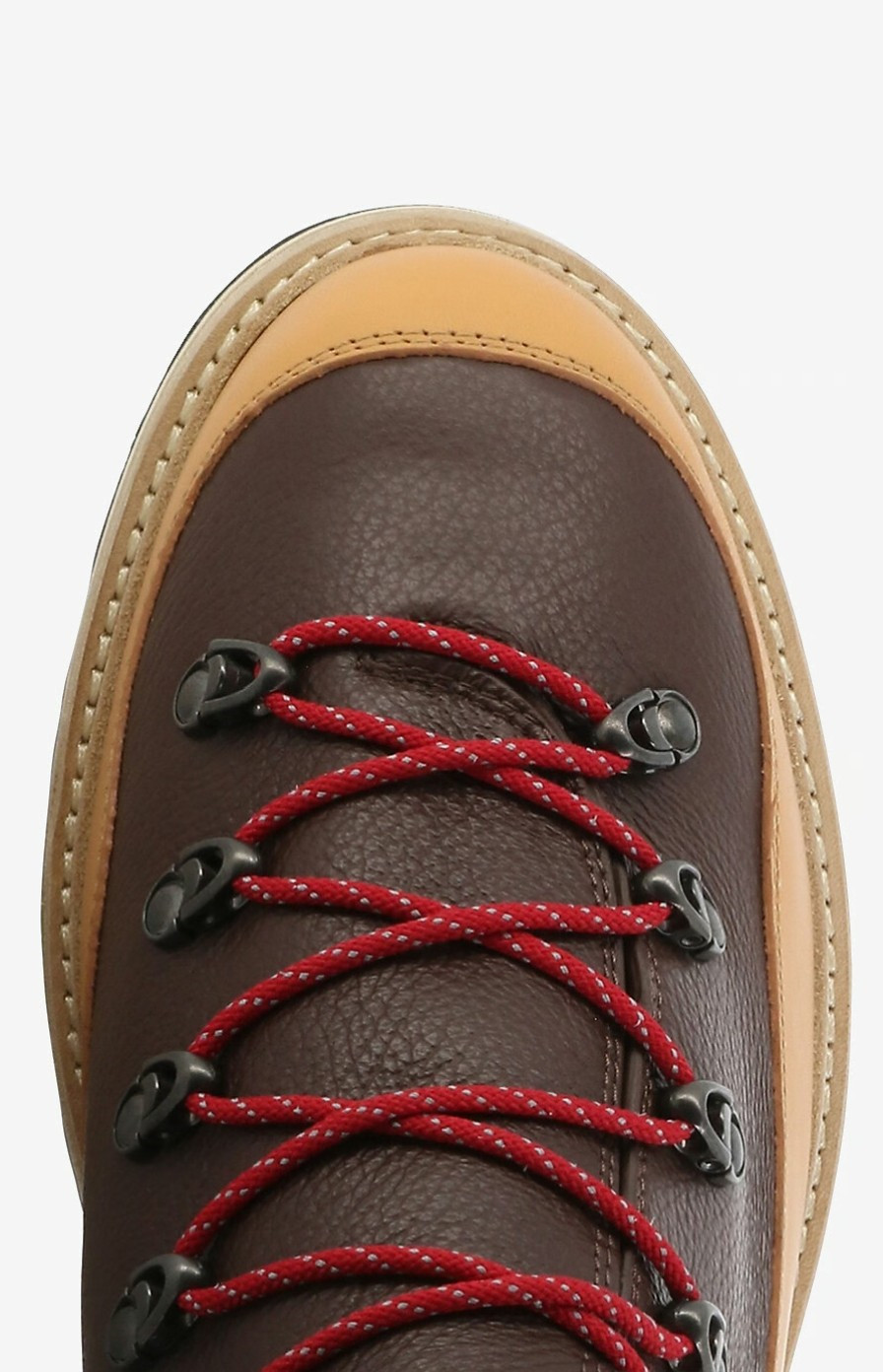 Kožené turistické boty Pánské boty Peka Trek jsou vylepšenou verzí klasické turistické obuvi a odkazují na horolezecké kořeny značky Moncler. Boty Peka Trek vás provedou jak horskými výlety tak i zimou ve městě. Pánský styl je vyroben z kůže a vylepšen gumovým vzorkem Vibram, který zajišťuje přilnavost bez ohledu na terén. Kožený svršek Kožený vnitřek Zapínání na tkaničky i zip Kožený lem Mikropryžová mezipodešev Gumový podrážka Vibram