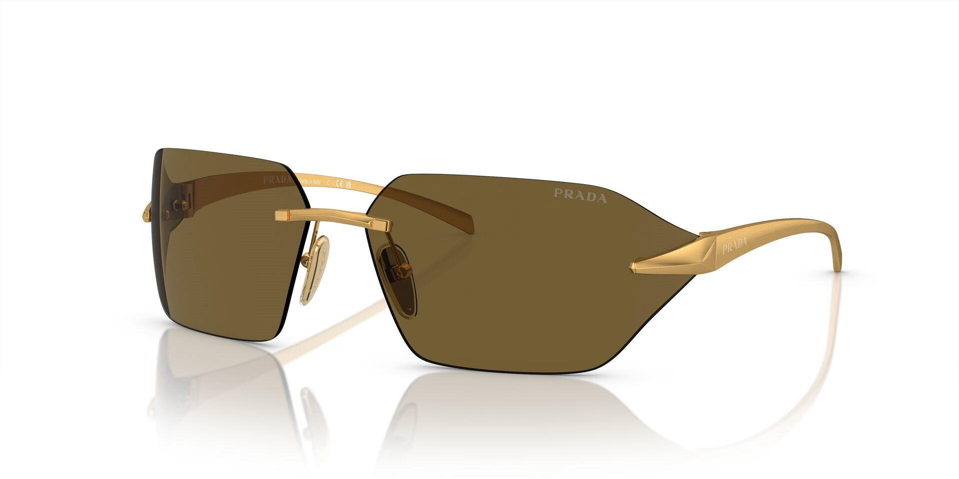 Prada představuje model PR A55S, který povyšuje kovový rám na novou úroveň elegance. Pevné tmavě hnědé čočky a kovový rám vytvářejí sofistikovaný vzhled, který hladce spojuje ikonický styl s moderním vkusem. Tento nádherný pár navržený v nepravidelném tvaru je ukázkou bezkonkurenčního řemeslného zpracování a nadčasového půvabu značky Prada. Díky leštěné saténové úpravě ze žlutého zlata na přední straně a na spáncích zažijete luxus, který je nově definován díky odvážné a zároveň rafinované estetice designu, kterou ztělesňují tyto nádherné sluneční brýle s kovovým rámem.