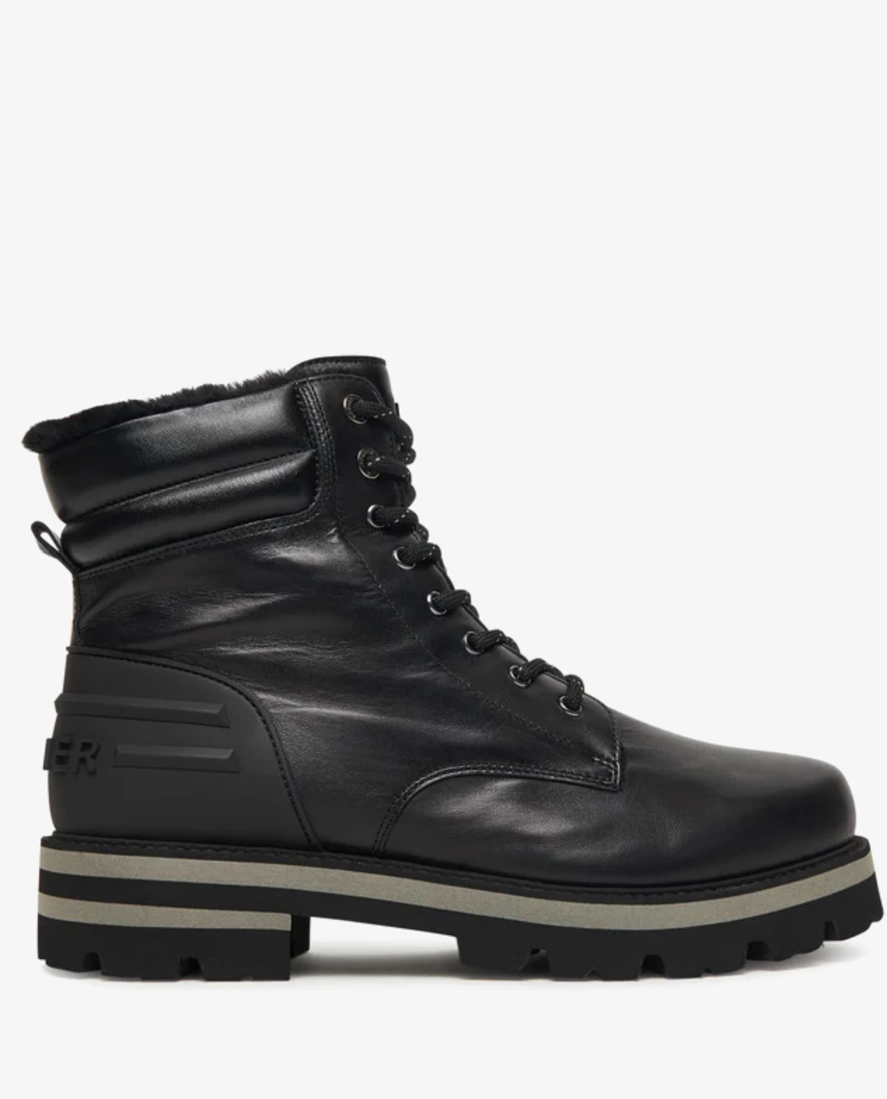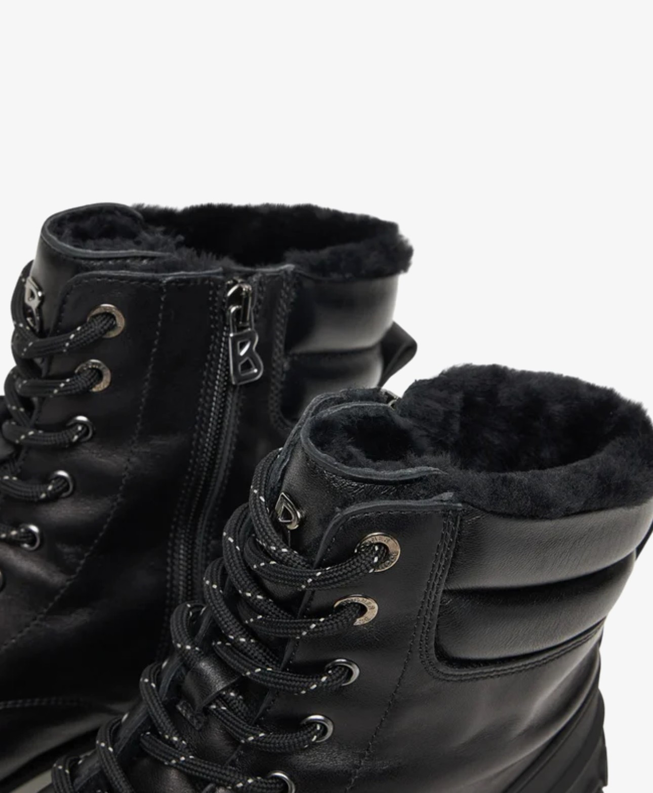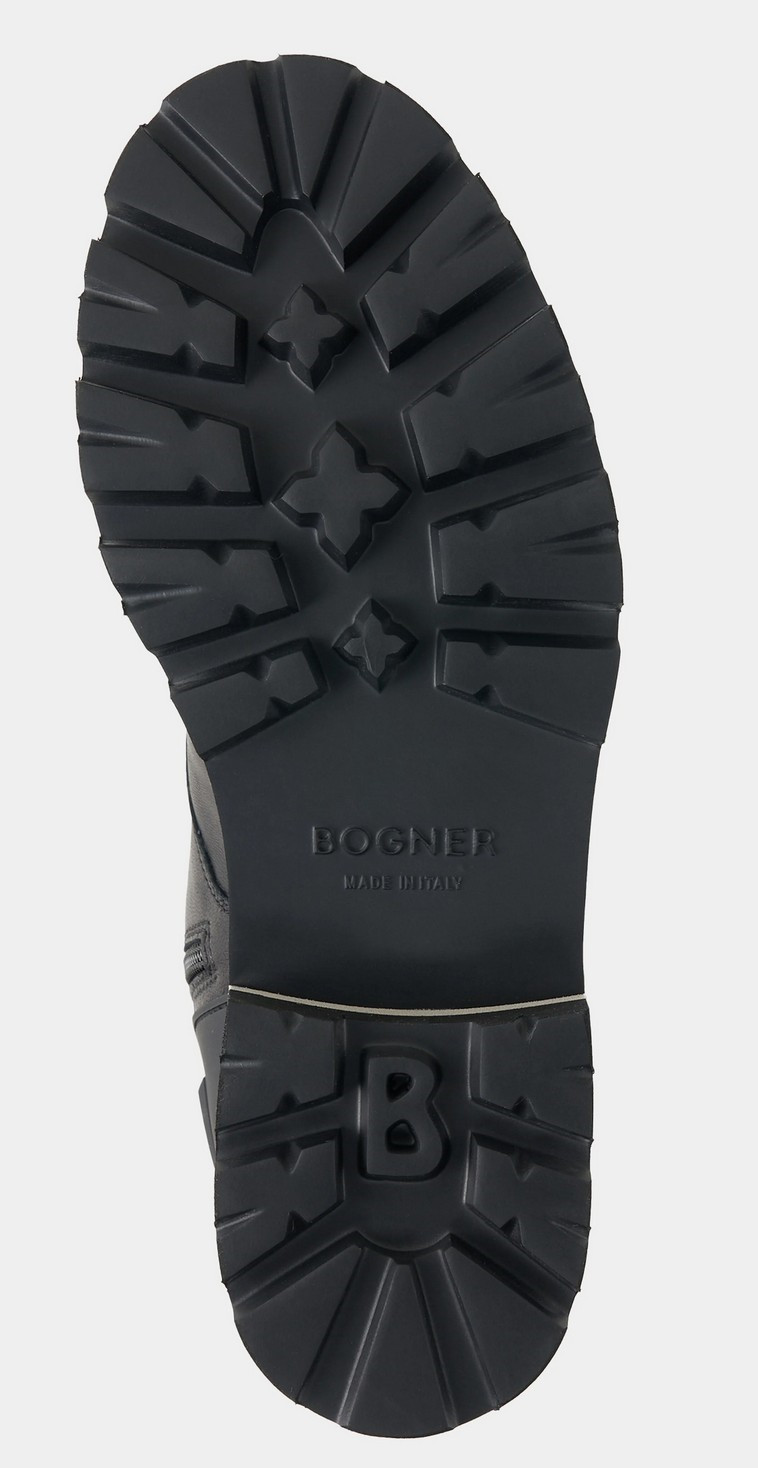 Boty mají EVA (ethyl-vinyl-acetát) podrážku, kožený svršak a podšívku z pravého beránka. Boty Courchevel z nappa kůže zaujmou jako moderní kousky, doplněné gumovou částí na zadní straně. Design podtrhuje klasické šněrování, boční zip a akcenty značky. Komfort zajišťuje vnitřní zpracování z čisté jehněčí kůže a gumová podrážka s profilem. Boty z nappa kůže Zapínání na klasické šněrování a boční zip B Zaoblená špička Prošívaný svršek Jazyk s logem B Očka BOGNER Gumová část s vyraženým logem na patě Poutko na zadní straně Vložka z jehněčí kůže Vyjímatelná stélka z jehněčí kůže Výška svršku: 16 cm Šířka svršku: 10 cm Profilovaná EVA-gumová podrážka s pruhovanými detaily Výška platformy (vpředu): 2,5 cm Výška podpatku (vzadu): 4 cm Včetně tašky na boty s logem Vyrobeno v Itálii