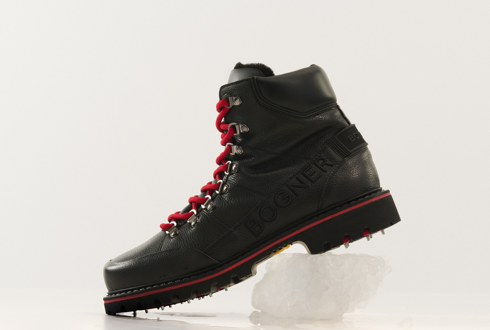 Stylová zimní obuv s gumovou podrážkou pro spolehlivou trakci, kvalitním koženým svrškem a hřejivou podšívkou z pravého beránka. Ideální kombinace komfortu, odolnosti a tepelné izolace. Šněrovací boty Helsinki se vyznačují zrnité kůží s hladkými částmi, doplněnou o teplou vnitřní výstelku z čisté jehněčí kůže. Optimální přilnavost na všech površích zajišťuje gumová podrážka s výklopnými hroty. Kontrastní akcenty a typické detaily s logem dodávají botám moderní vzhled. Boty z nappa a broušené kůže Zapínání na klasické šněrování Zaoblená špička Jazyk s logem B Nýty BOGNER Logo vyšívané na boku Gumová část s logem na patě Vložka z jehněčí kůže Vyjímatelná stélka z jehněčí kůže Výška svršku: 14 cm Šířka svršku: 10 cm Pryžová podrážka s kontrastními pruhy a výklopnými hroty OCsystem® Výška platformy (vpředu): 1,5 cm Výška podpatku (vzadu): 3 cm Včetně tašky na boty s logem Vyrobeno v Itálii