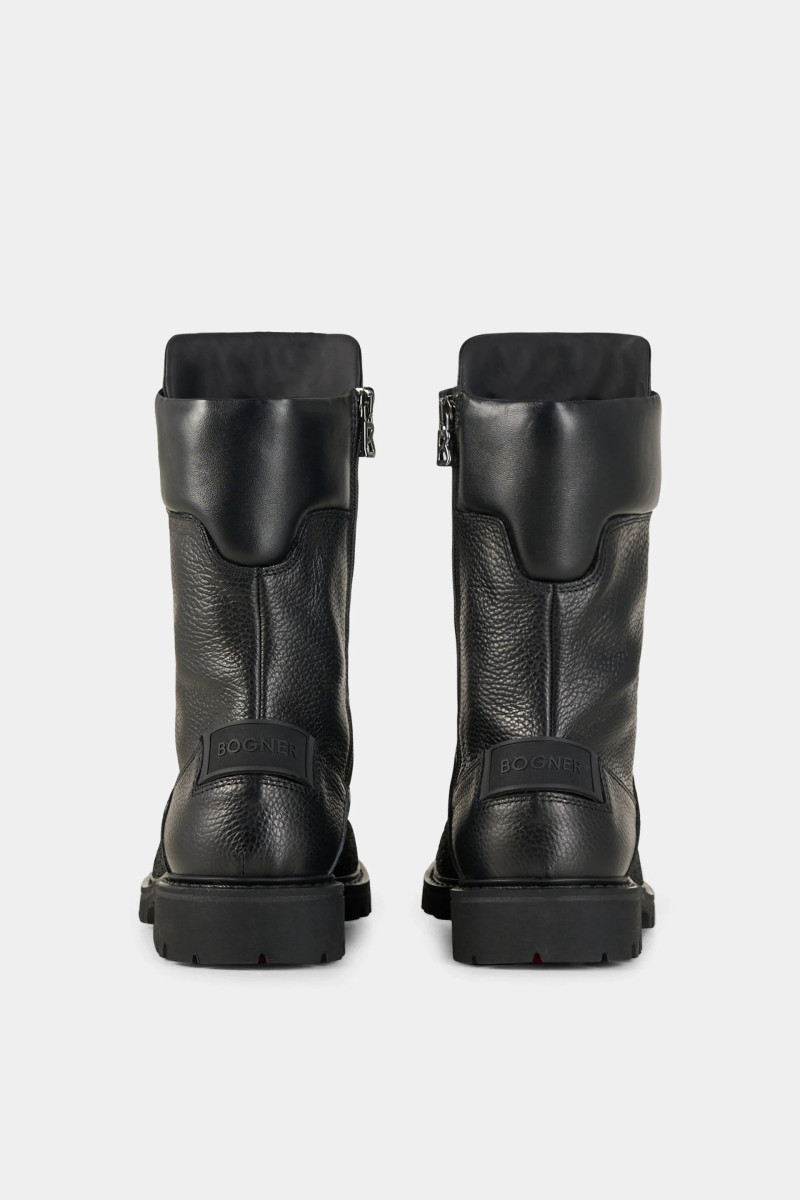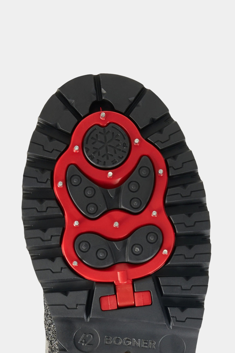 Luxusní kožená obuv s hroty a s gumovou podrážkou, koženým svrškem i podšívkou z jemné kůže. BOGNER Helsinki S 21 C jsou luxusní zimní boty inspirované horským trekingem, které spojují řemeslnou preciznost s pokročilou funkčností a zajišťují jistý krok i v náročných podmínkách. Svršek z hladké telecí kůže – elegantní a vysoce odolný, přirozeně chrání před vlhkostí Podšívka z ovčí vlny – měkká a hřejivá, poskytuje optimální tepelnou izolaci Šněrování s kovovými háčky – inspirováno alpskou obuví, zajišťuje stabilní uchycení Podrážka Vibram – proslulá konstrukce s vysokou přilnavostí a odolností proti opotřebení Integrovaný systém hrotů – výsuvné prvky zvyšující trakci na zledovatělém povrchu Polstrovaný límec – pohodlí a ochrana při kontaktu s pokožkou Vyrobeno v Itálii